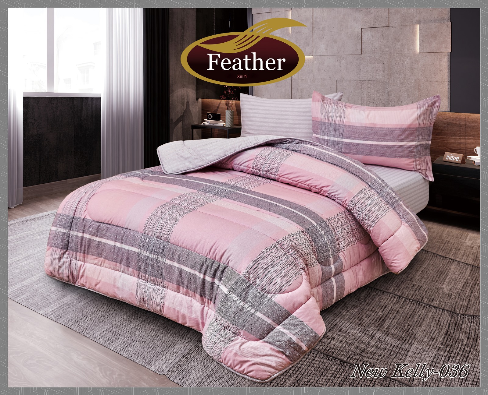 فيذر نيو كيلي ديباج مقلم قطن نفر ونص 4 قطع 240 × 180 سم ( لحاف )