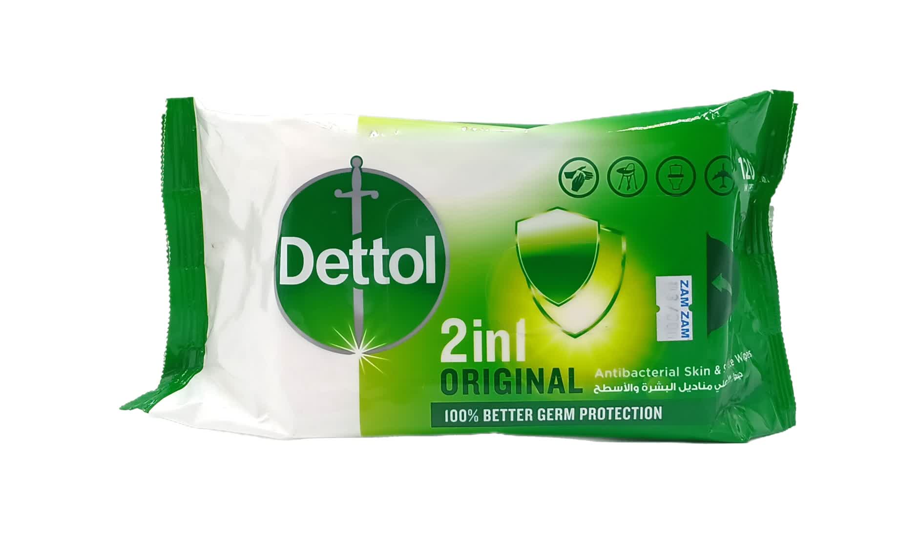 ديتول الاصلي مناديل البشرة والاسطح مضادة للبكتيريا 120 منديل