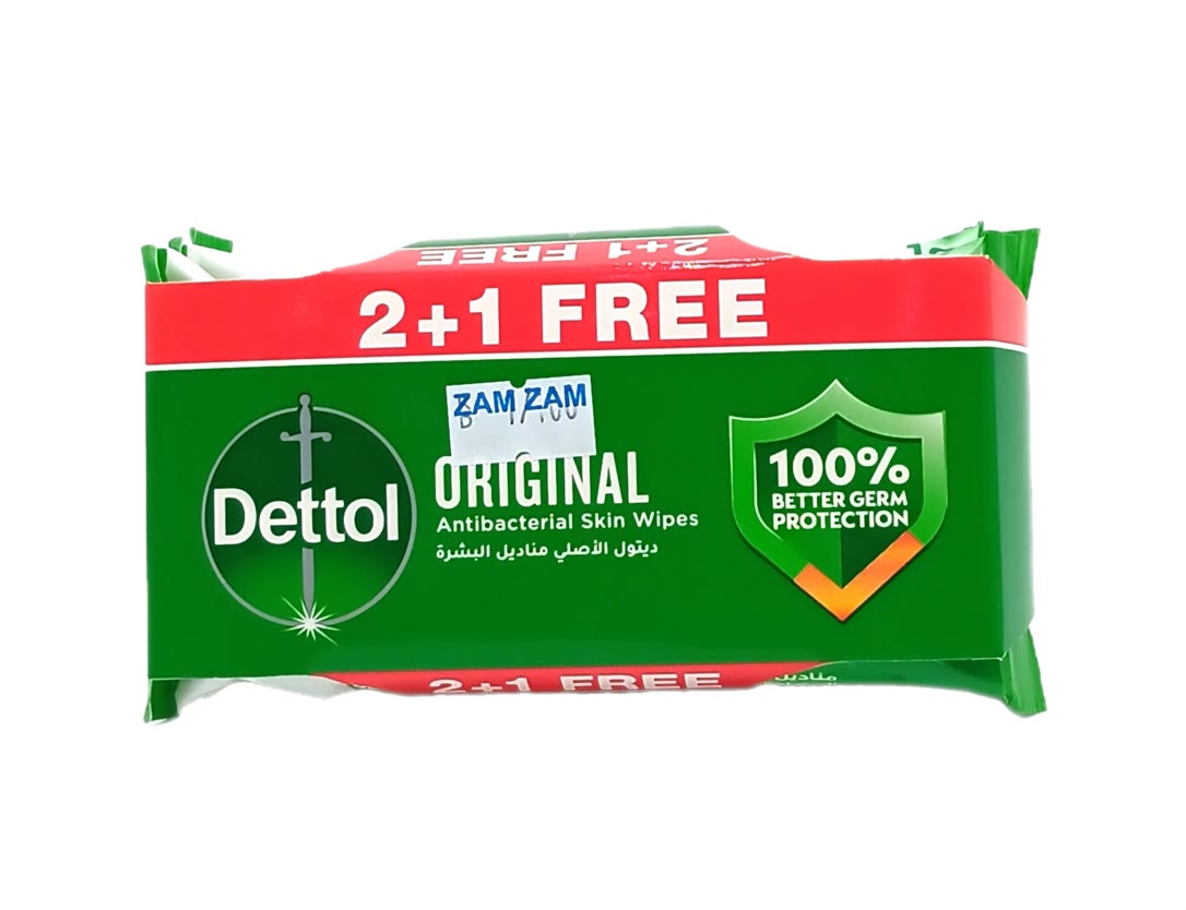 ديتول الاصلي مناديل البشرة مضادة للبكتيريا 3 اكياس 2+1 مجانا