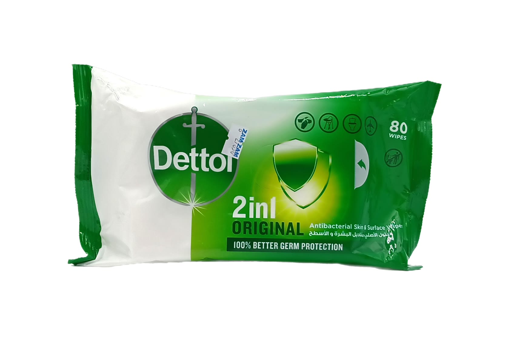 ديتول الاصلي مناديل البشرة والاسطح مضادة للبكتيريا 80 منديل