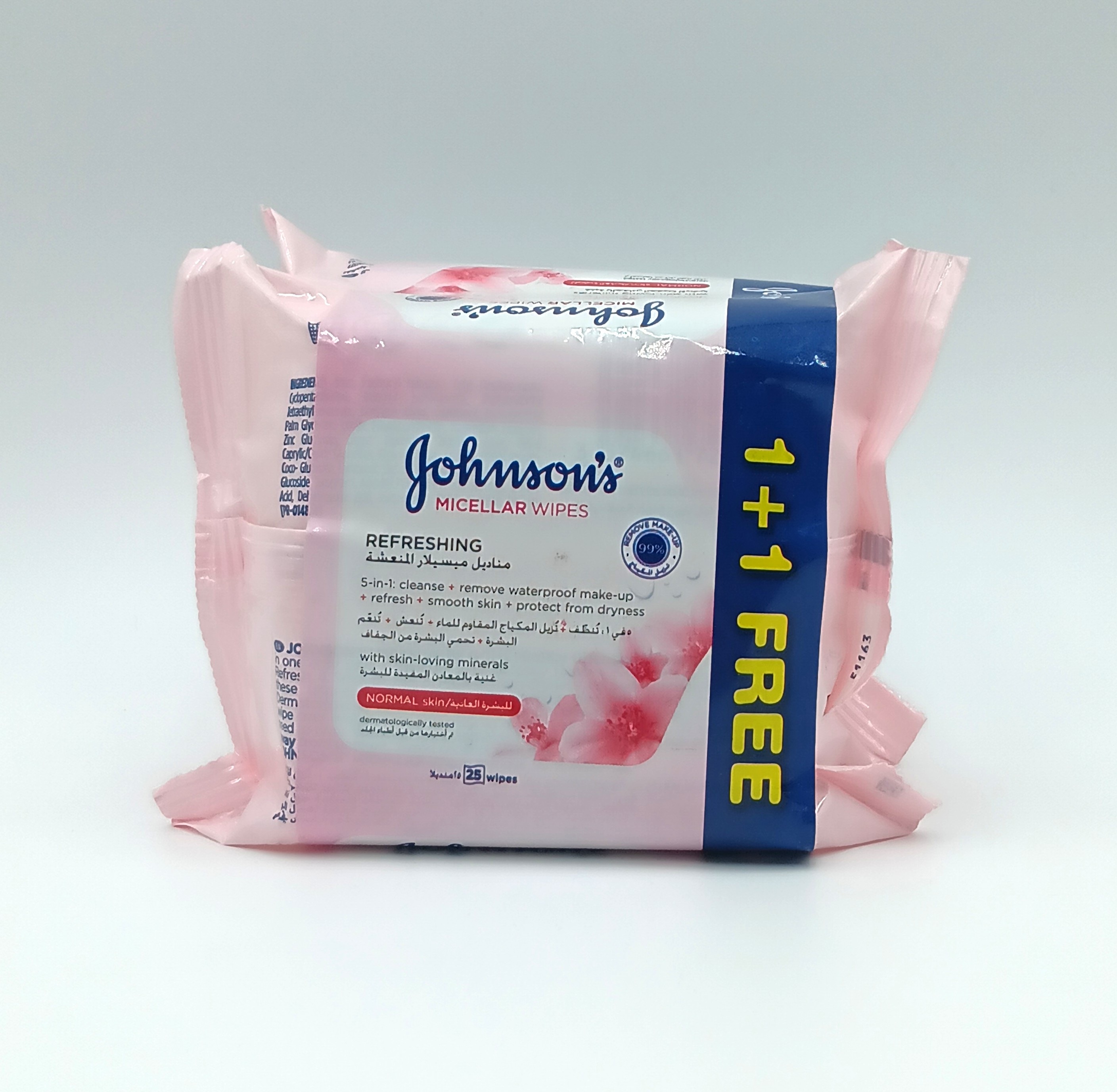 جونسون مناديل ميسيلار المرطبة للبشرة 2 كيس للبشرة العادية
