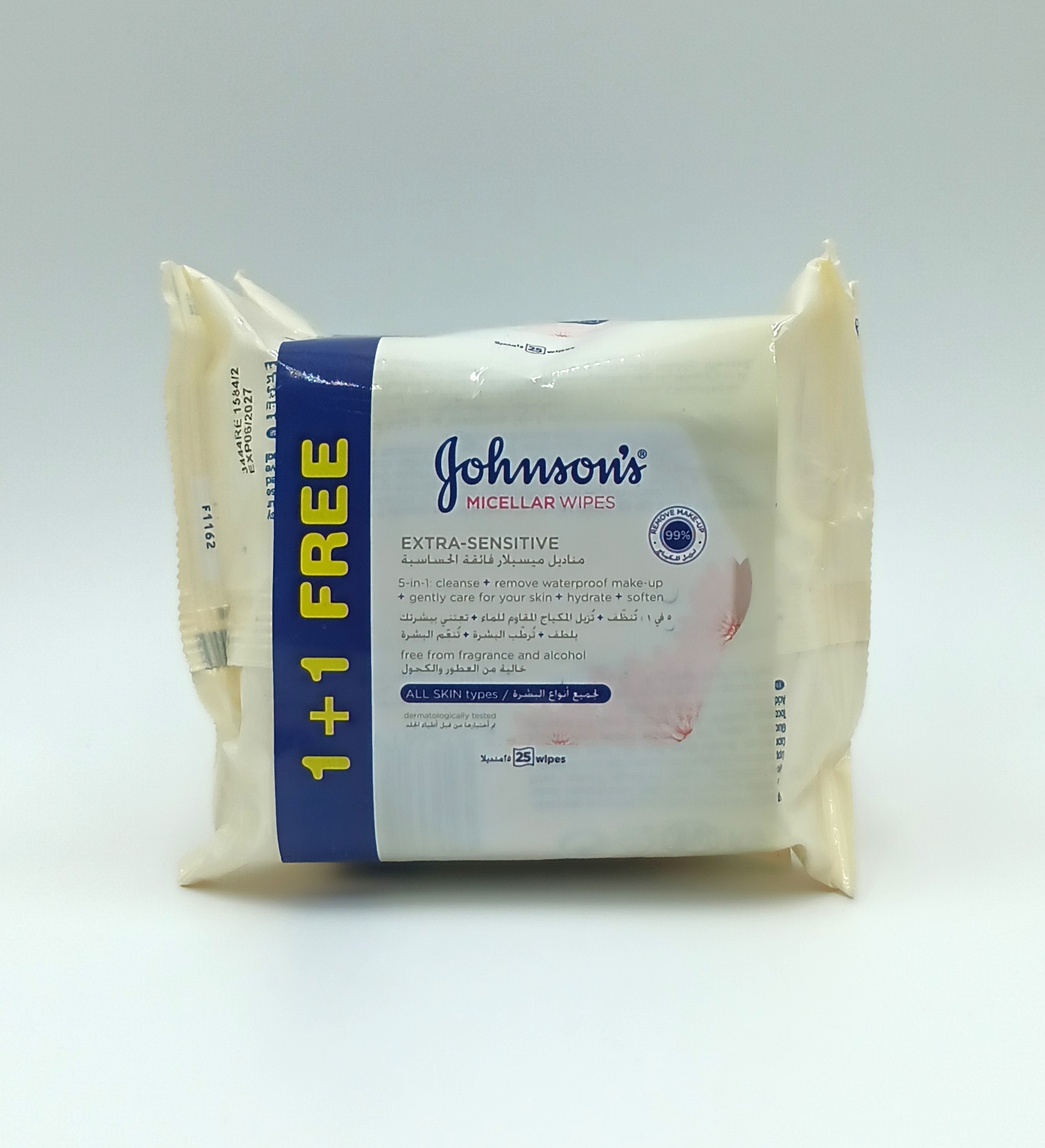 جونسون مناديل ميسيلار فائقة الحساسية للبشرة 2 كيس لجميع انواع البشرة