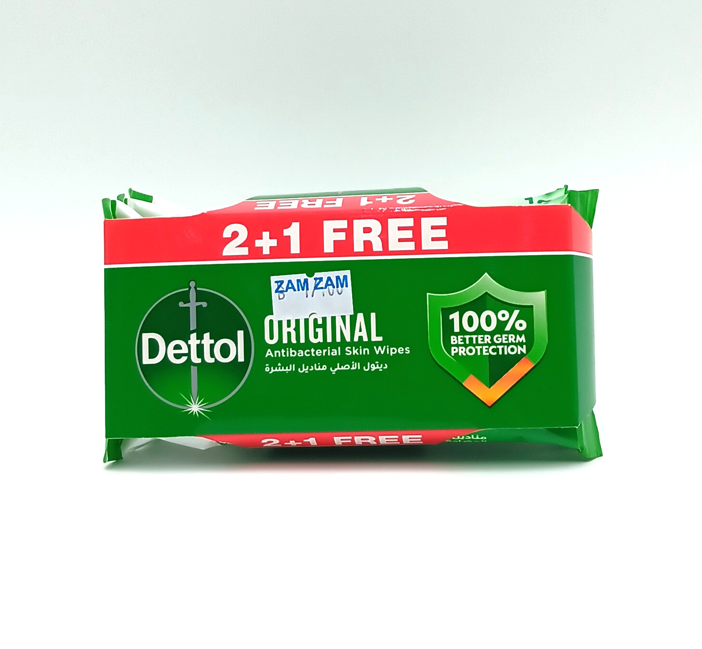 ديتول الاصلي مناديل البشرة مضادة للبكتيريا 3 اكياس 2+1 مجانا