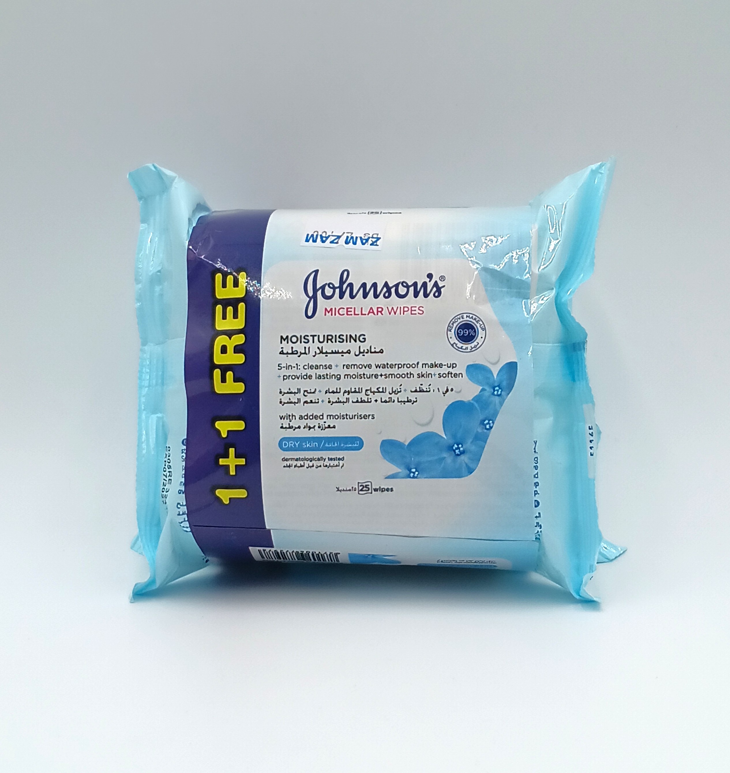 جونسون مناديل ميسيلار المرطبة للبشرة 2 كيس للبشرة الجافة