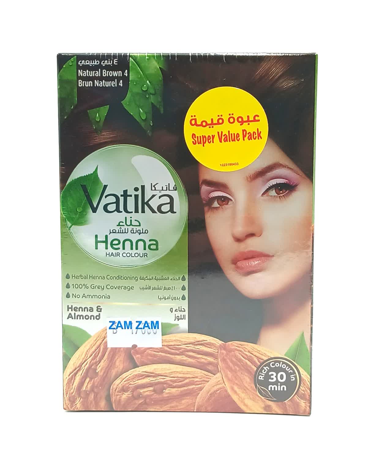 فاتيكا حناء ملونة للشعر مع اللوز بدون امونيا لون بني طبيعي 4 - قطعتين