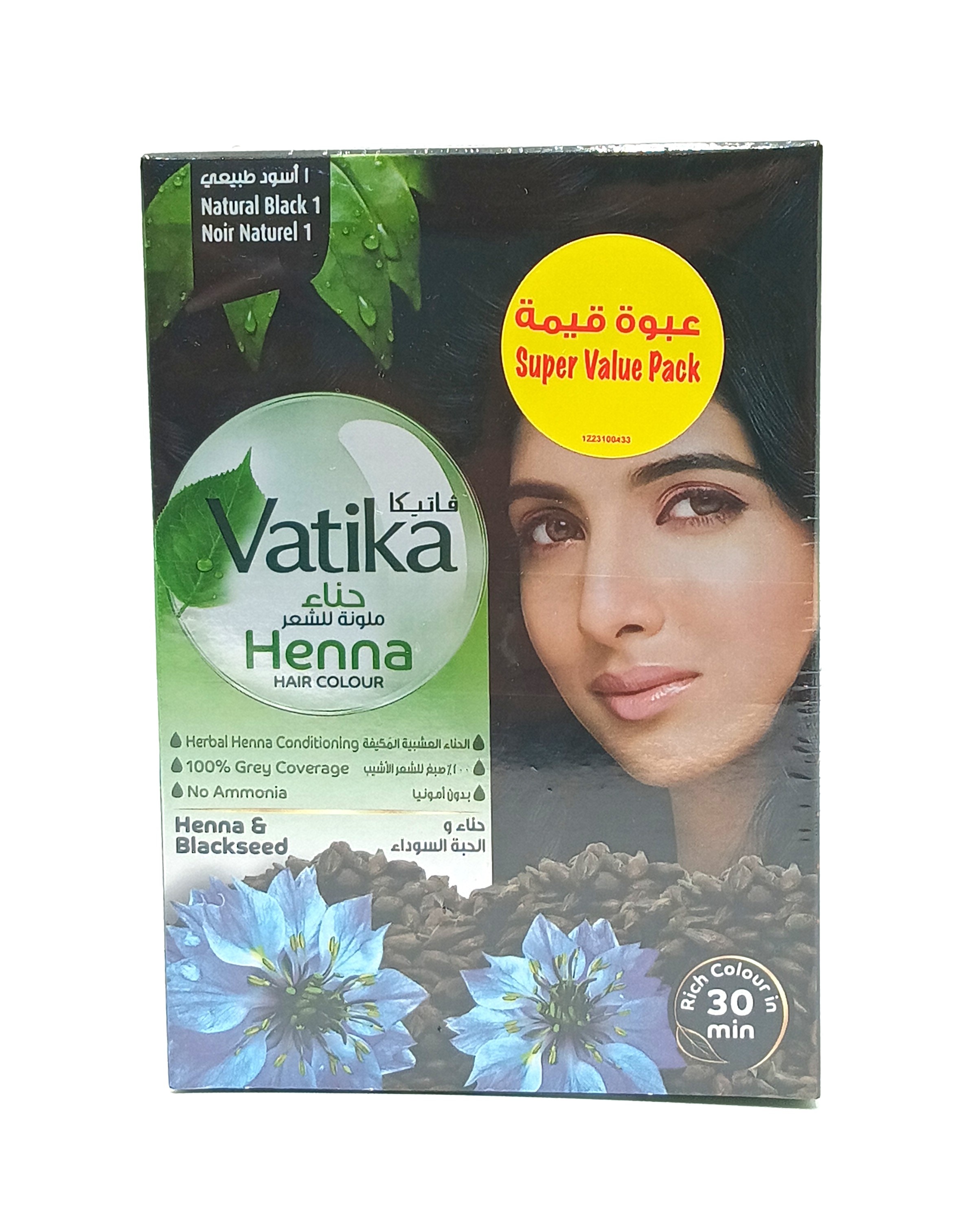 فاتيكا حناء ملونة للشعر مع الحبة السوداء بدون امونيا لون اسود طبيعي 1 قطعتين