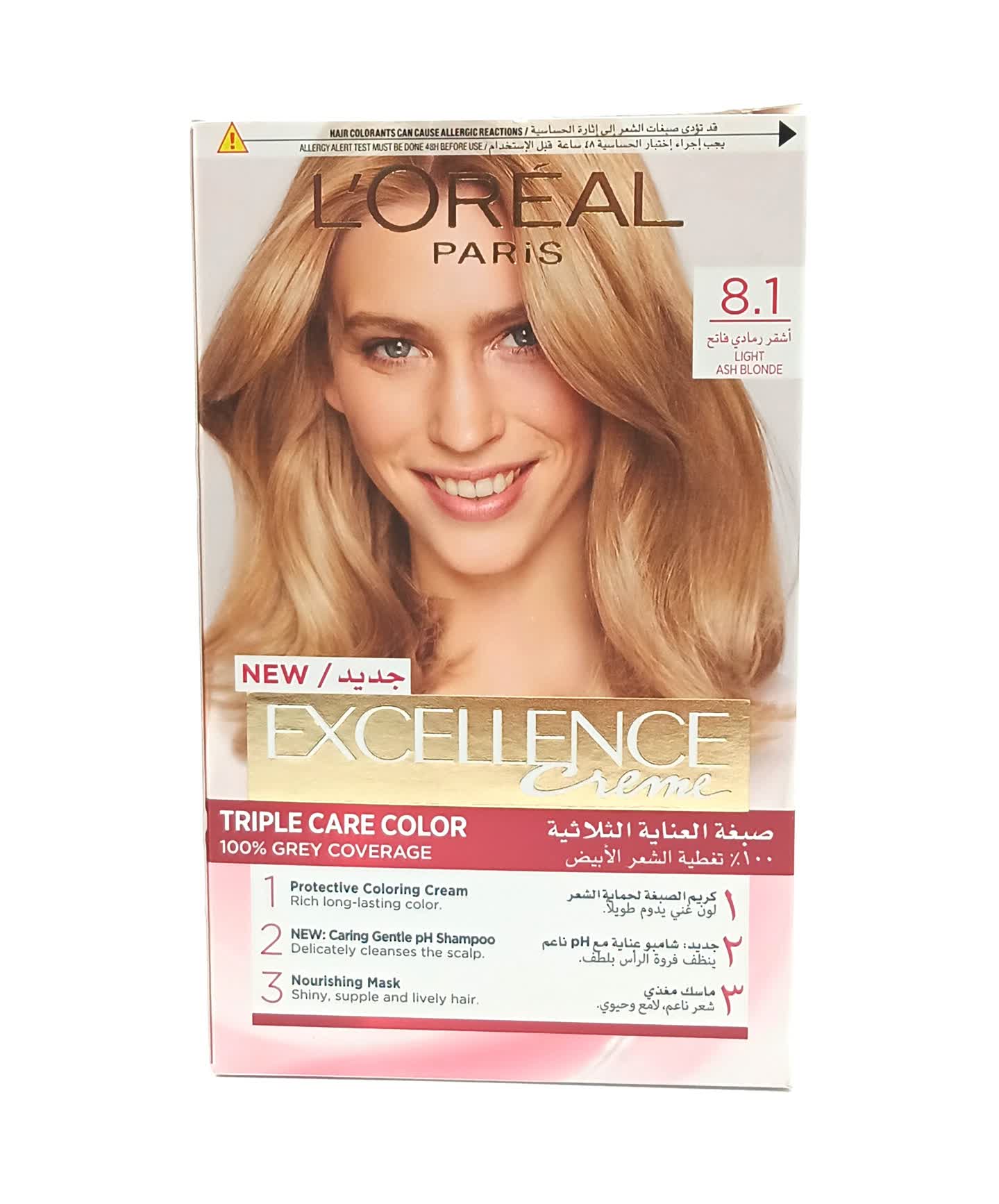 لوريال اكسيلانس كريم صبغة العناية الثلاثية للشعر لون اشقر رمادي فاتح 8.1