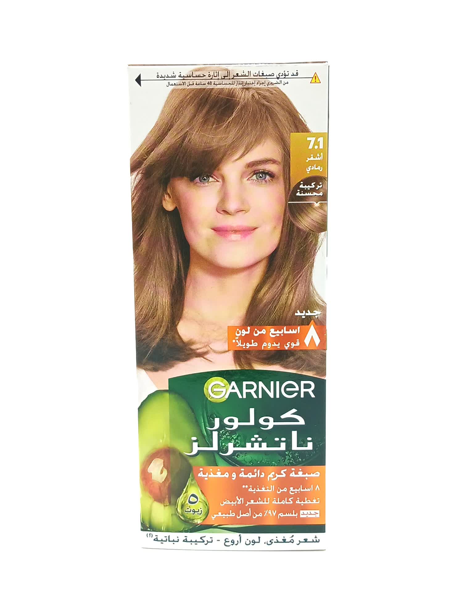 غارنييه كولور ناتشرلز كريم صبغة دائمة مغذية للشعر 5 زيوت لون اشقر رمادي 7.1