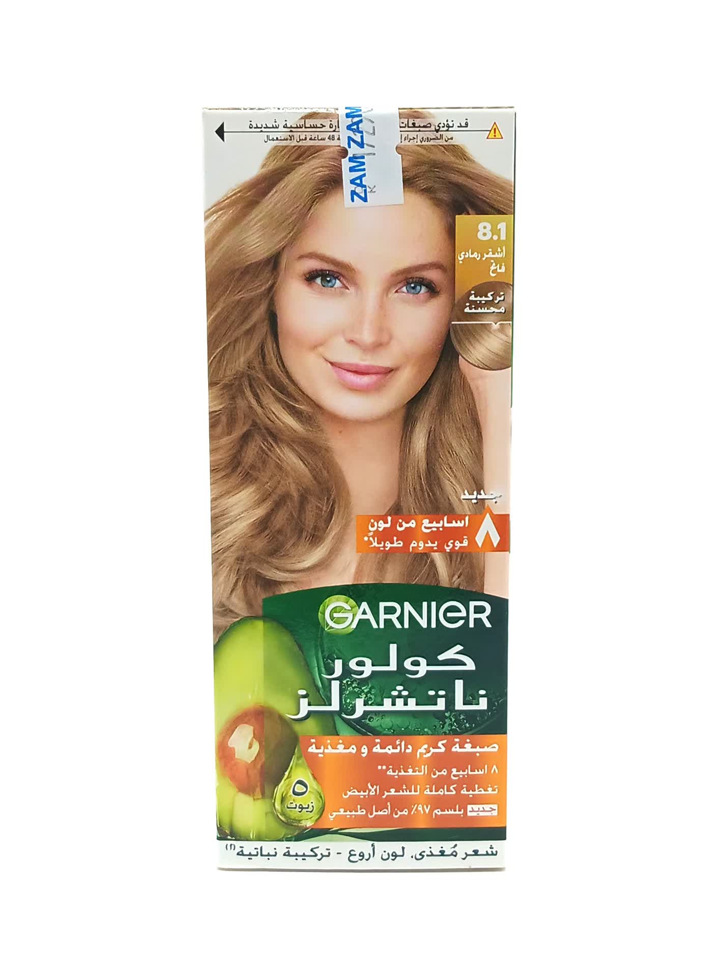 غارنييه كولور ناتشرلز كريم صبغة دائمة مغذية للشعر 5 زيوت لون اشقر رمادي فاتح 8.1