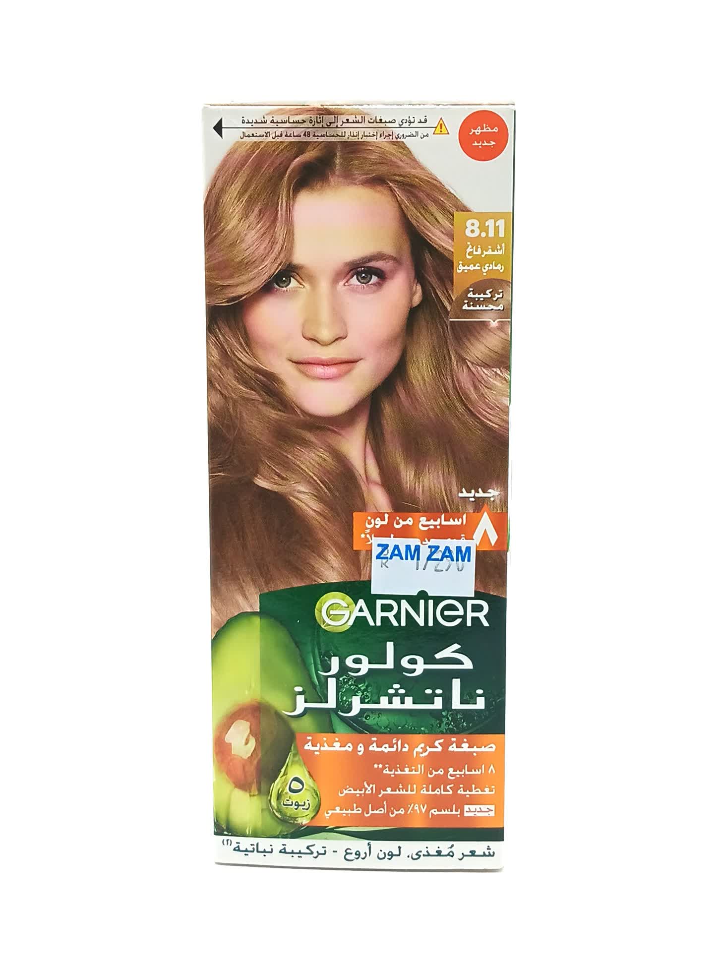 غارنييه كولور ناتشرلز كريم صبغة دائمة مغذية للشعر 5 زيوت لون اشقر رمادي فاتح عميق 8.11