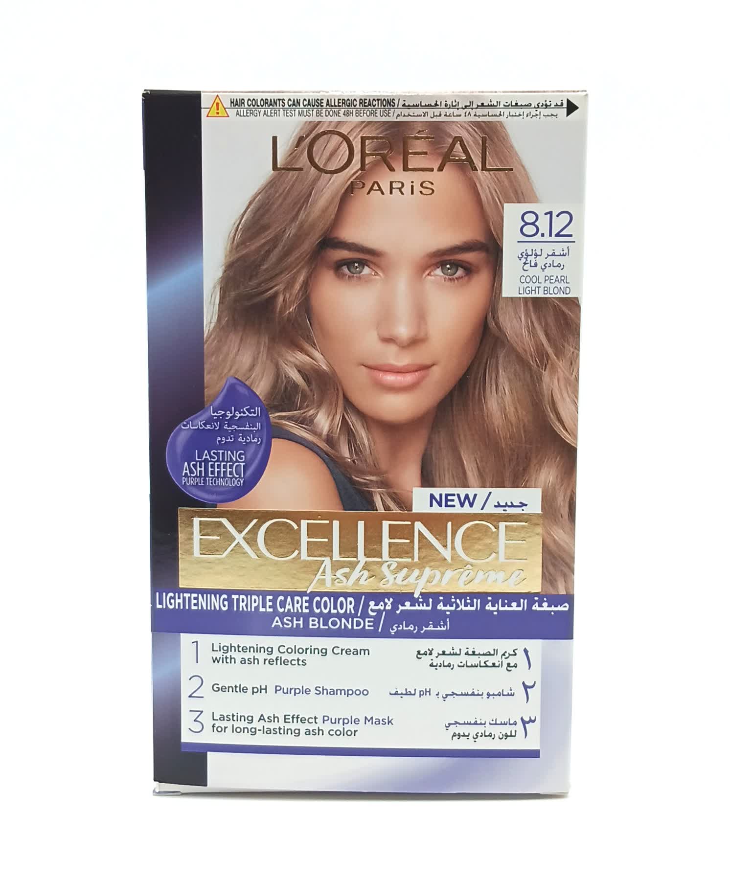 لوريال اكسيلانس اشقر رمادي صبغة العناية الثلاثية لشعر لامع لون اشقر لؤلؤي رمادي فاتح 8.12
