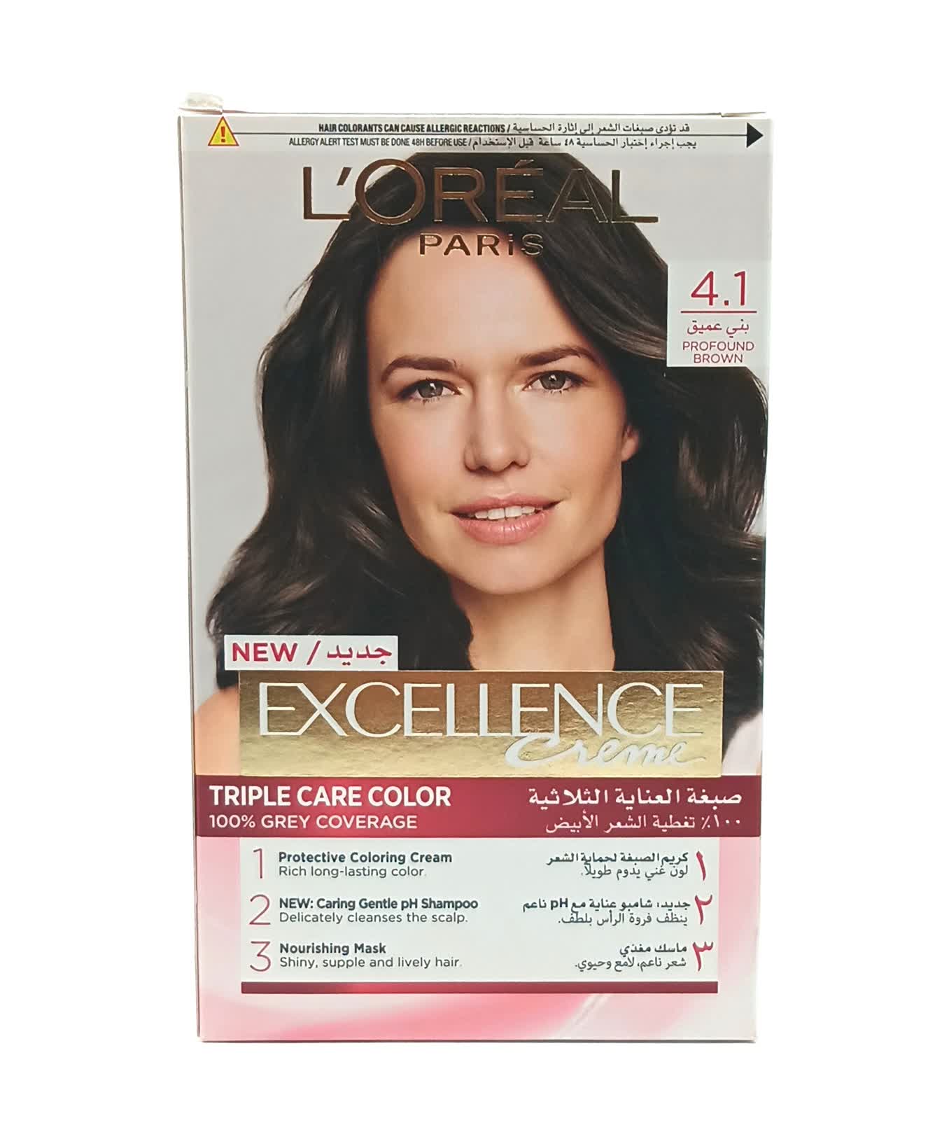 لوريال اكسيلانس كريم صبغة العناية الثلاثية للشعر لون بني غامق 4.1