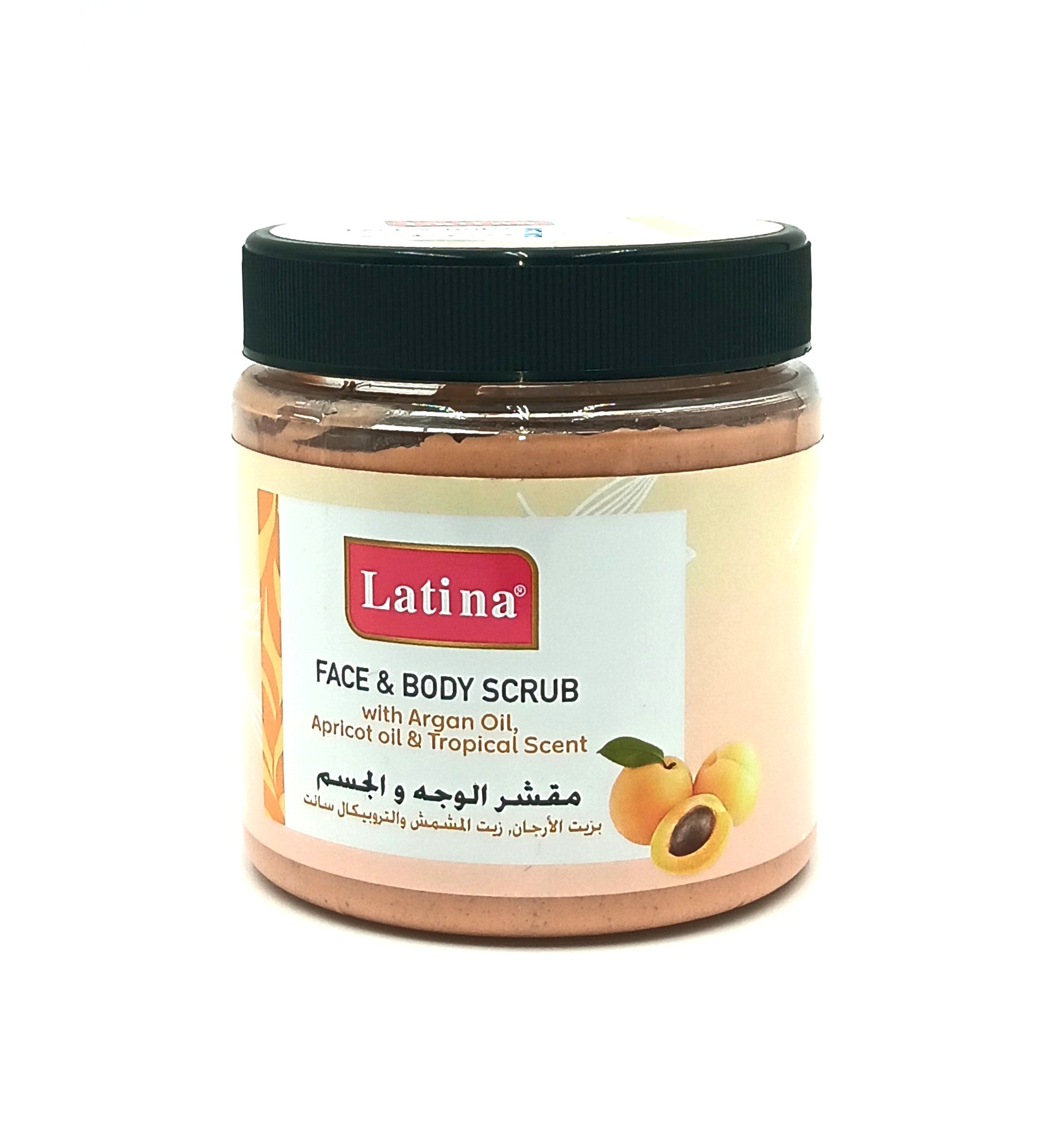 لاتينا مقشر الوجه والجسم بزيت الارجان وزيت المشمش ورائحة التروبيكال 500 مل ( الارغان )