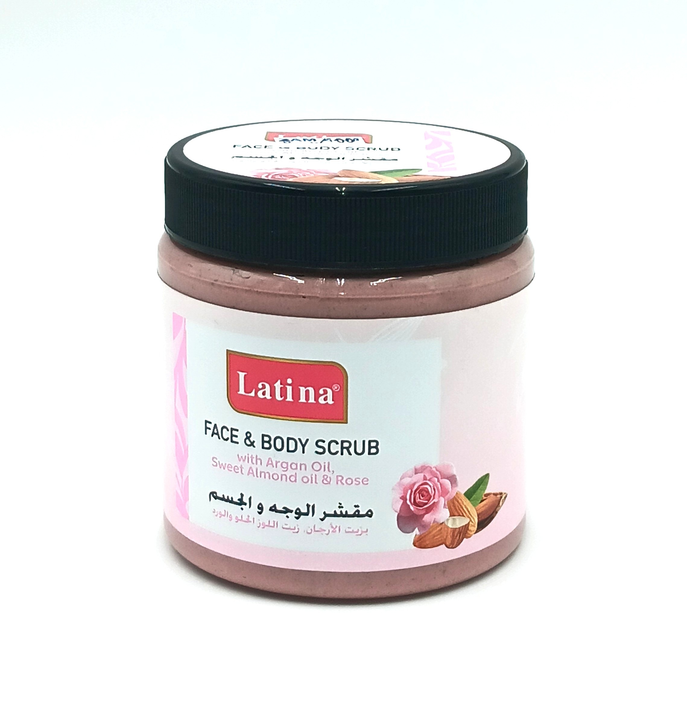 لاتينا مقشر الوجه والجسم بزيت الارجان وزيت اللوز الحلو والورد 500 مل