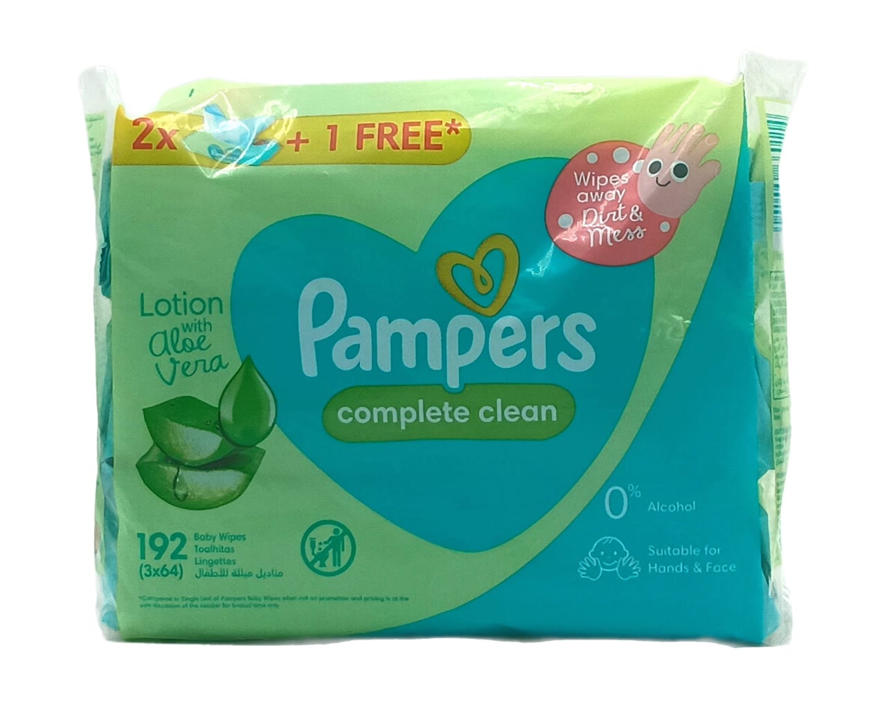 بامبرز مناديل مبللة النظافة الكاملة باللوشن مع الصبار 3 باكيت × 64 منديل مبلل