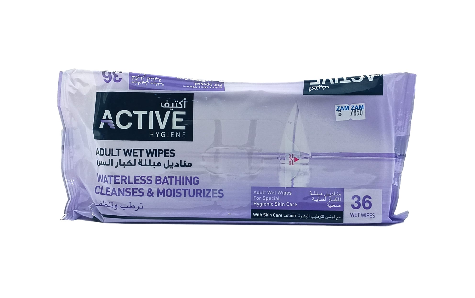 اكتيف مناديل مبللة للكبار ترطب وتنظف مع لوشن ترطيب البشرة 36 منديل مبلل