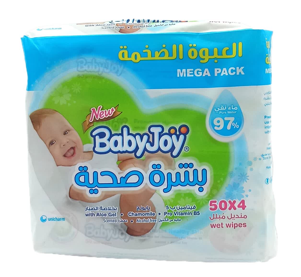 بيبي جوي مناديل مبللة للبشرة الصحية بخلاصة الصبار 4 باكيت × 50 منديل مبلل