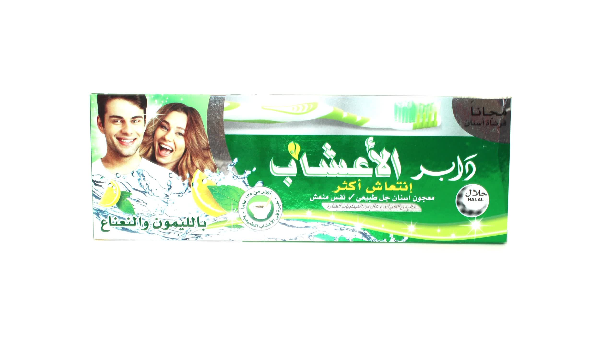 دابر الاعشاب معجون الاسنان جل لانتعاش اكثر 150 جرام + فرشاة اسنان بالليمون والنعناع