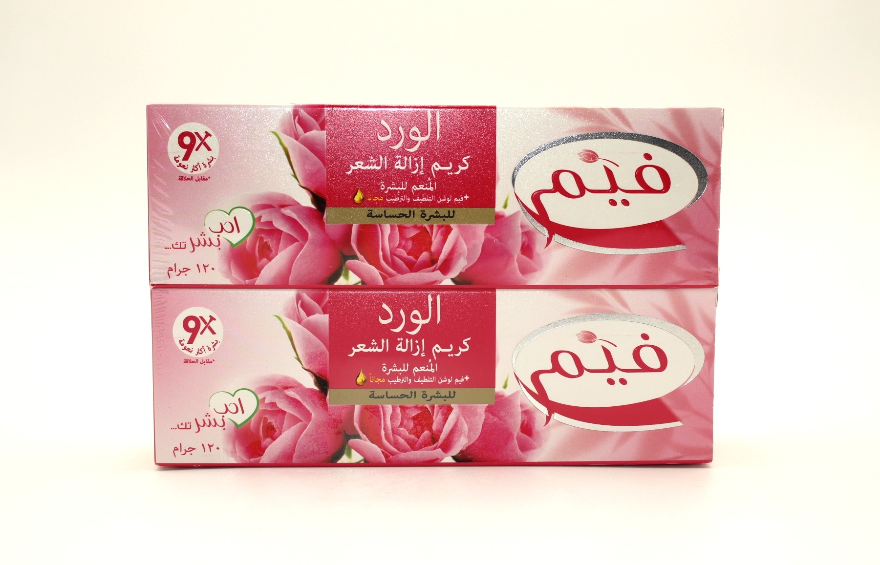 فيم كريم ازالة الشعر منعم البشرة للبشرة الحساسة قطعتين 120 جرام بالورد