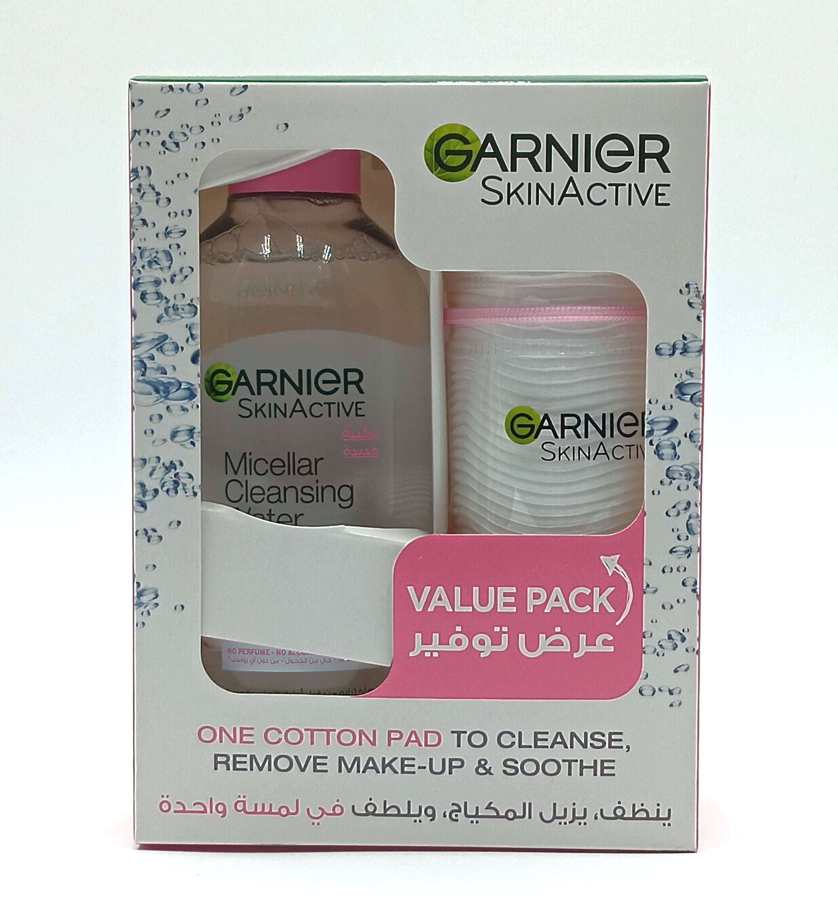 غارنييه ماء ميسيلار منظف البشرة ومزيل المكياج 400 مل + اقراص قطنية مجانا