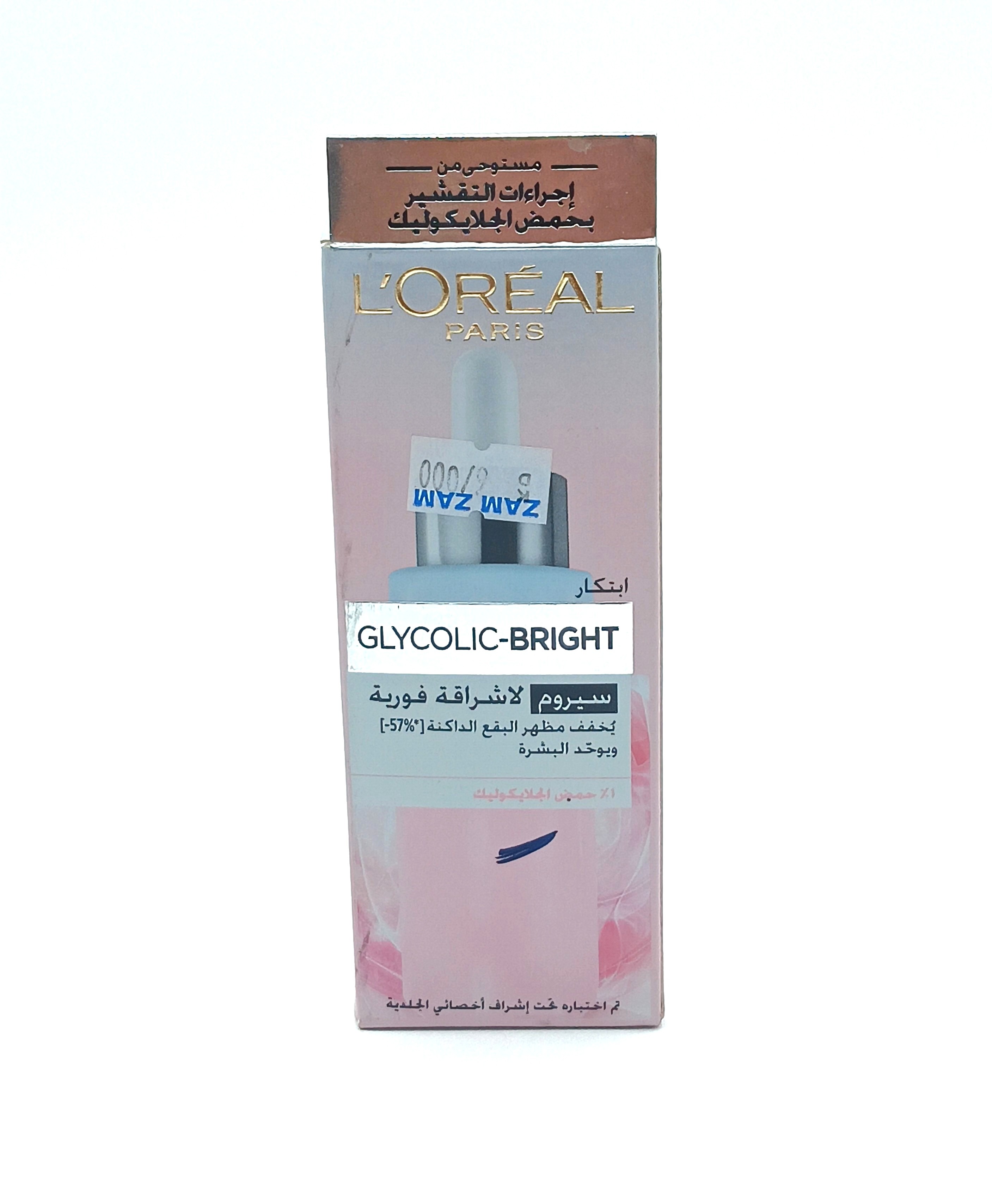 لوريال سيروم الوجه لاشراقة فورية يخفف مظهر البقع الداكنة ويوحد البشرة 30 مل جليكوليك برايت