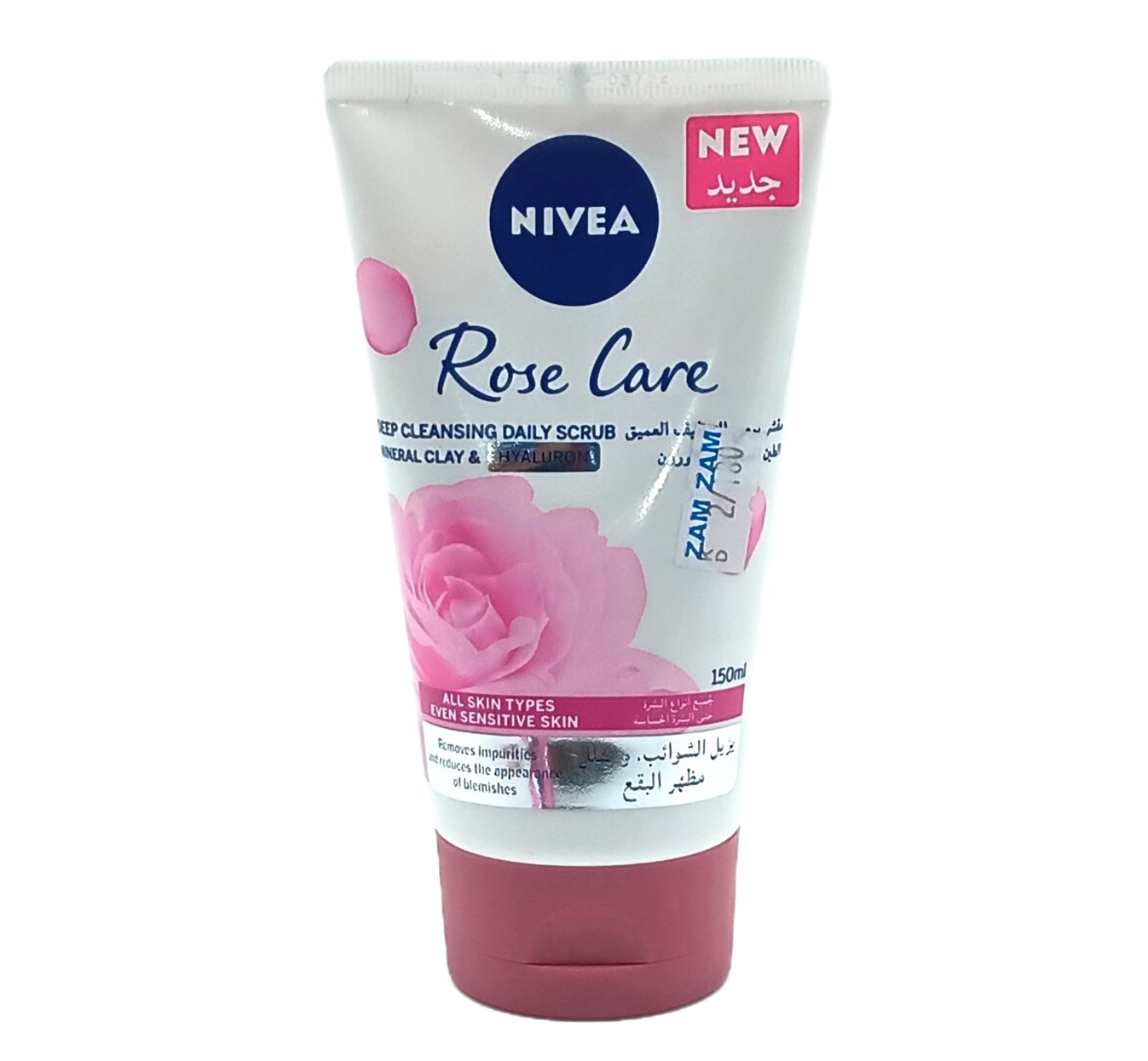 نيفيا مقشر يومي للتنظيف العميق للبشرة حماية الورد بالطين المعدني المعدني والهيلارون 150 مل