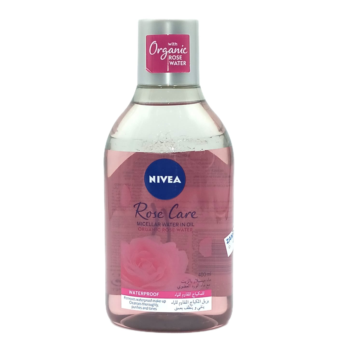 نيفيا مزيل المكياج ماء ميسيلار بالزيت مع ماء الورد العضوي للمكياج المقاوم للماء ينظف وينقي بعمق 400 مل