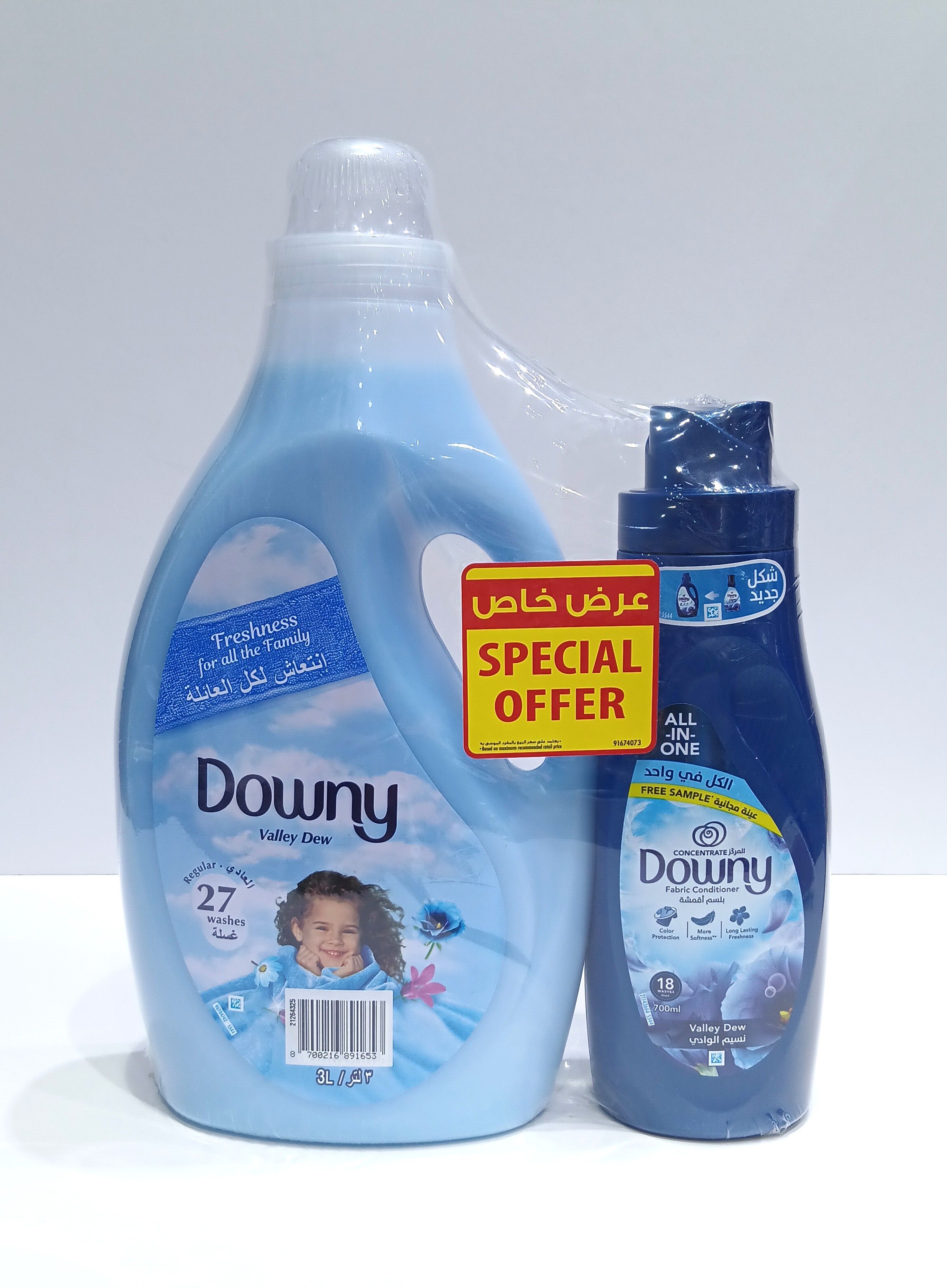 داوني منعم ملابس واقمشة العادي برائحة نسيم الوادي 3 لتر + بلسم الاقمشة المركز 700 مل
