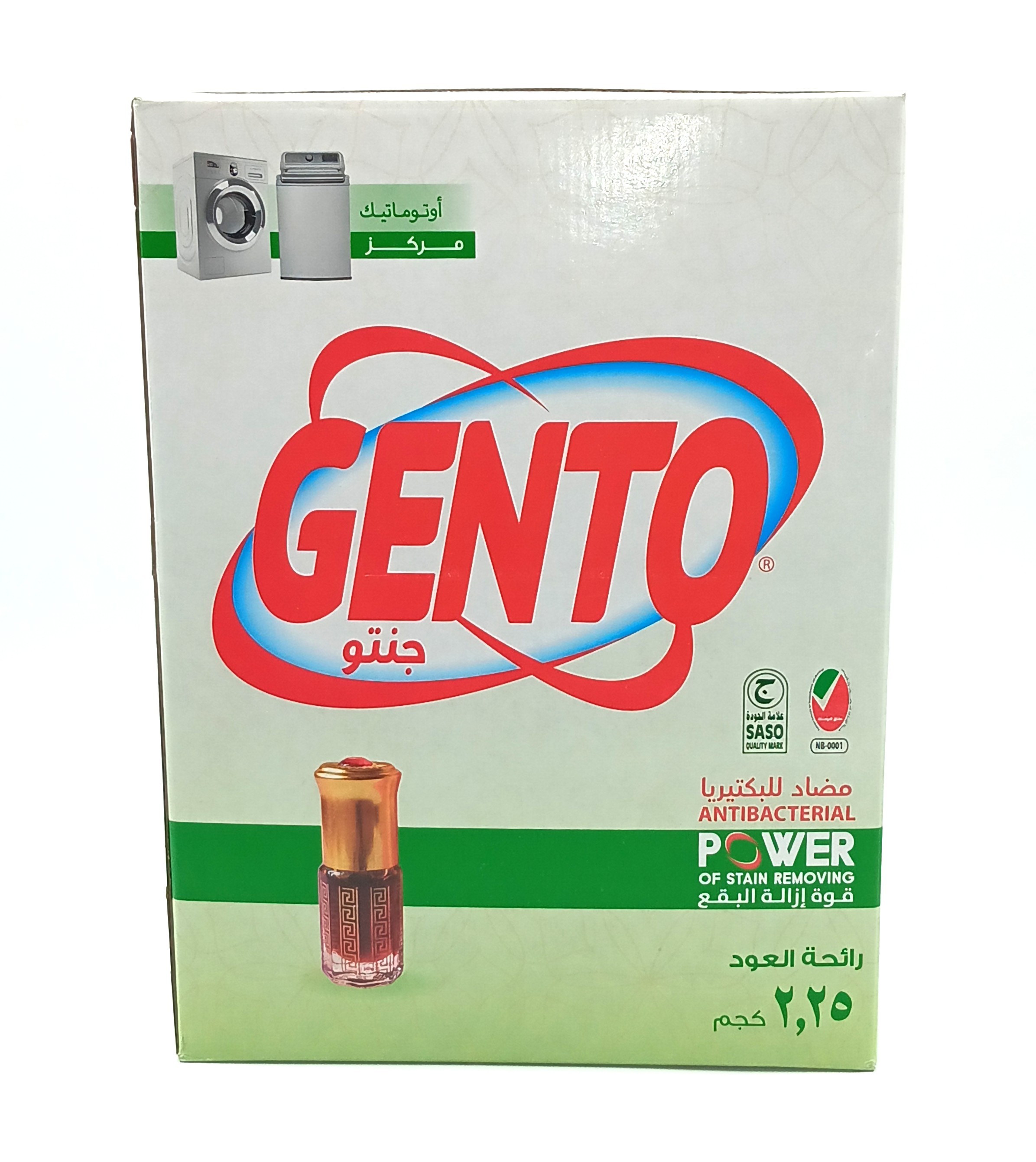 جنتو مسحوق غسيل وتنظيف الملابس برائحة العود 2.25 كجم مضاد للبكتيريا مع قوة ازالة البقع للغسالات الاوتوماتيكية