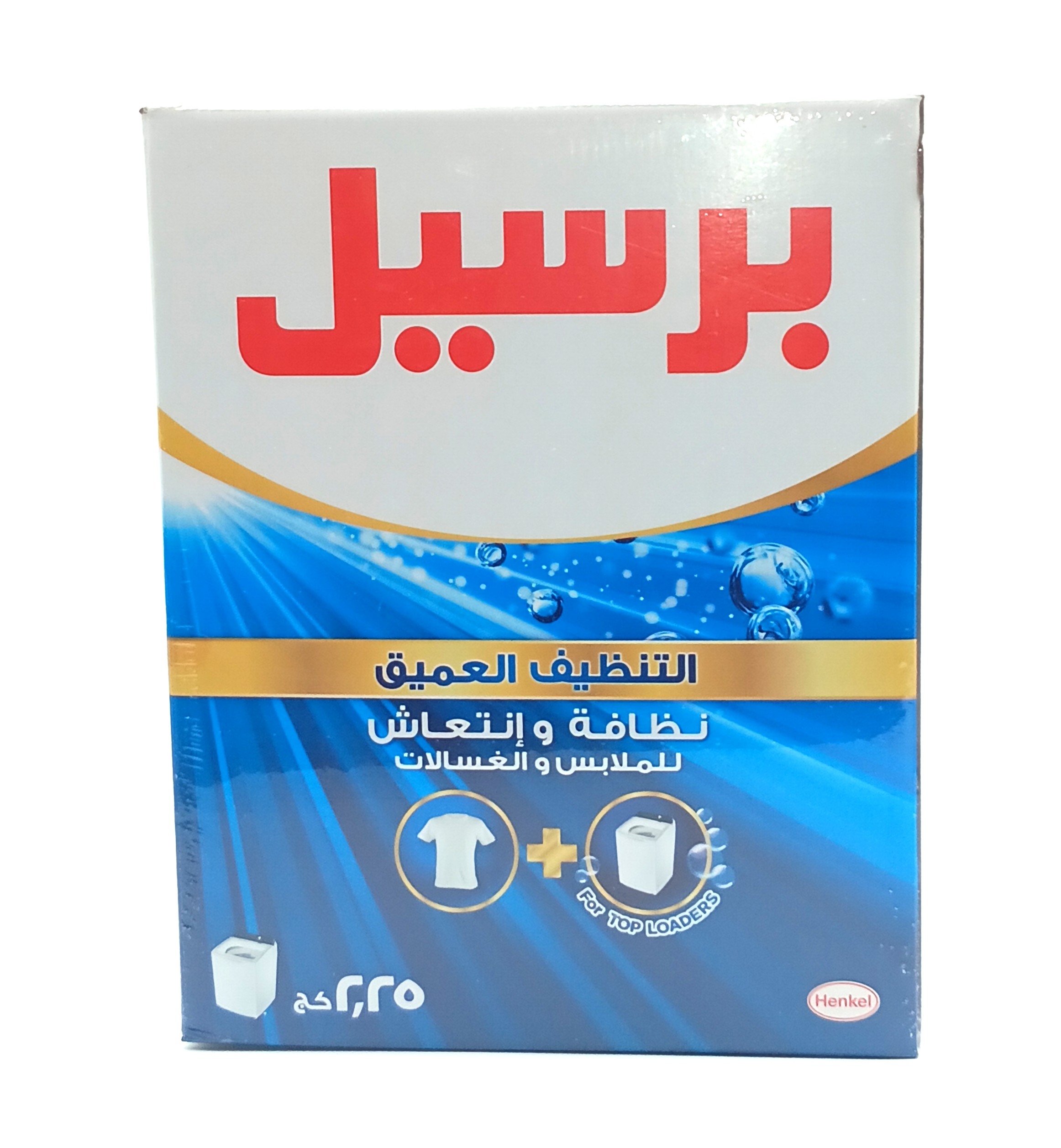 برسيل التنظيف العميق مسحوق غسيل وتنظيف الملابس الازرق 2.25 كجم حبتين نظافة وانتعاش للملابس والغسالات