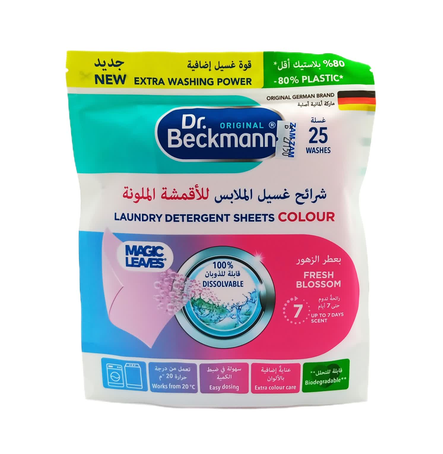 دكتور بيكمان الاصلي شرائح غسيل الملابس والاقمشة الملونة بعطر الزهور 25 شريحة ×100 جم