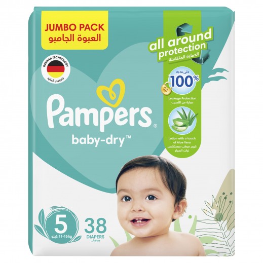 بامبرز بيبي دراي الحماية المتكاملة حفاضات مقاس 5 ( 11-16 كجم ) مع حماية ضد التسرب 38 قطعة