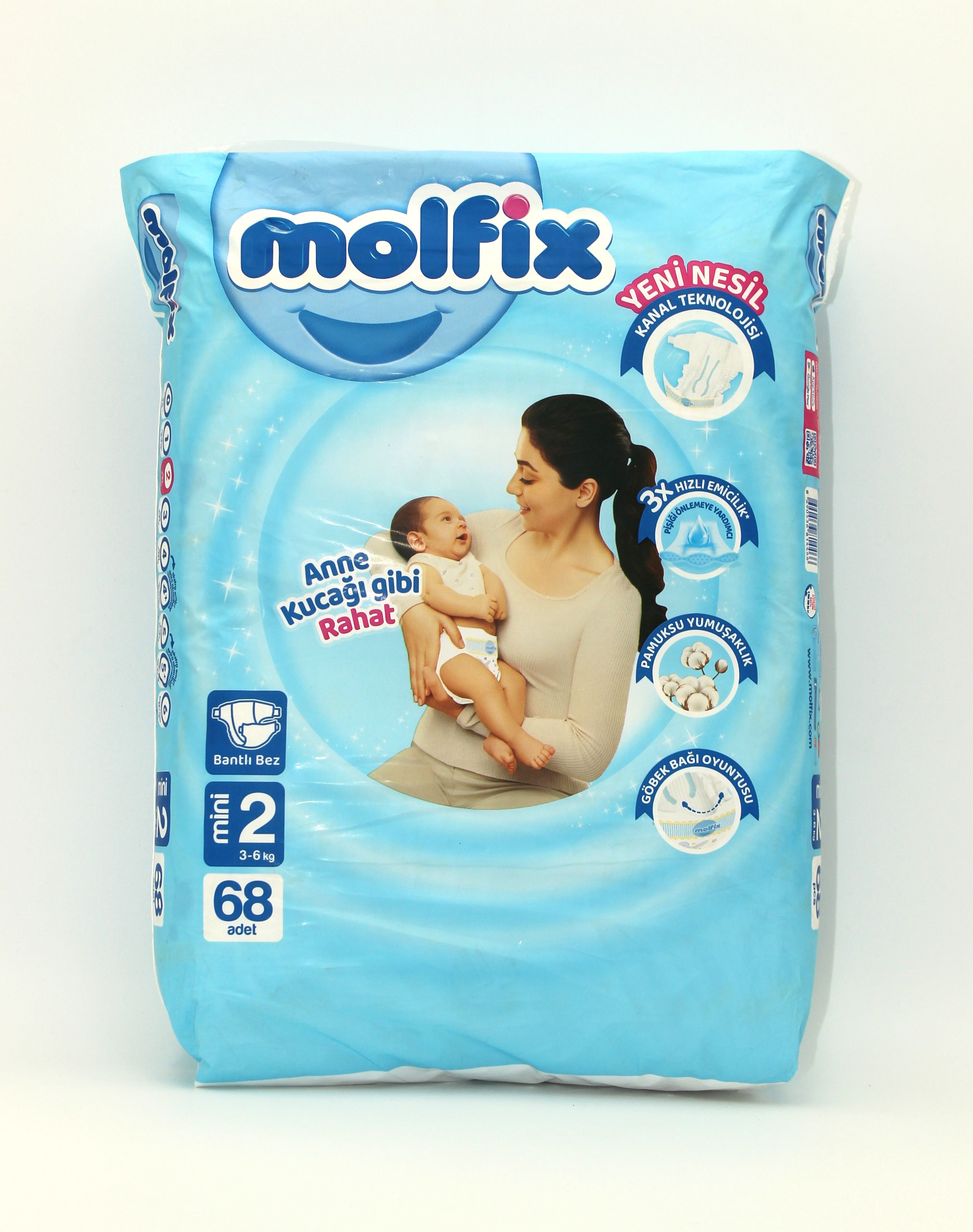 مولفيكس حفاضات اطفال مقاس 2 ميني ( 3-6 كجم ) 68 قطعة