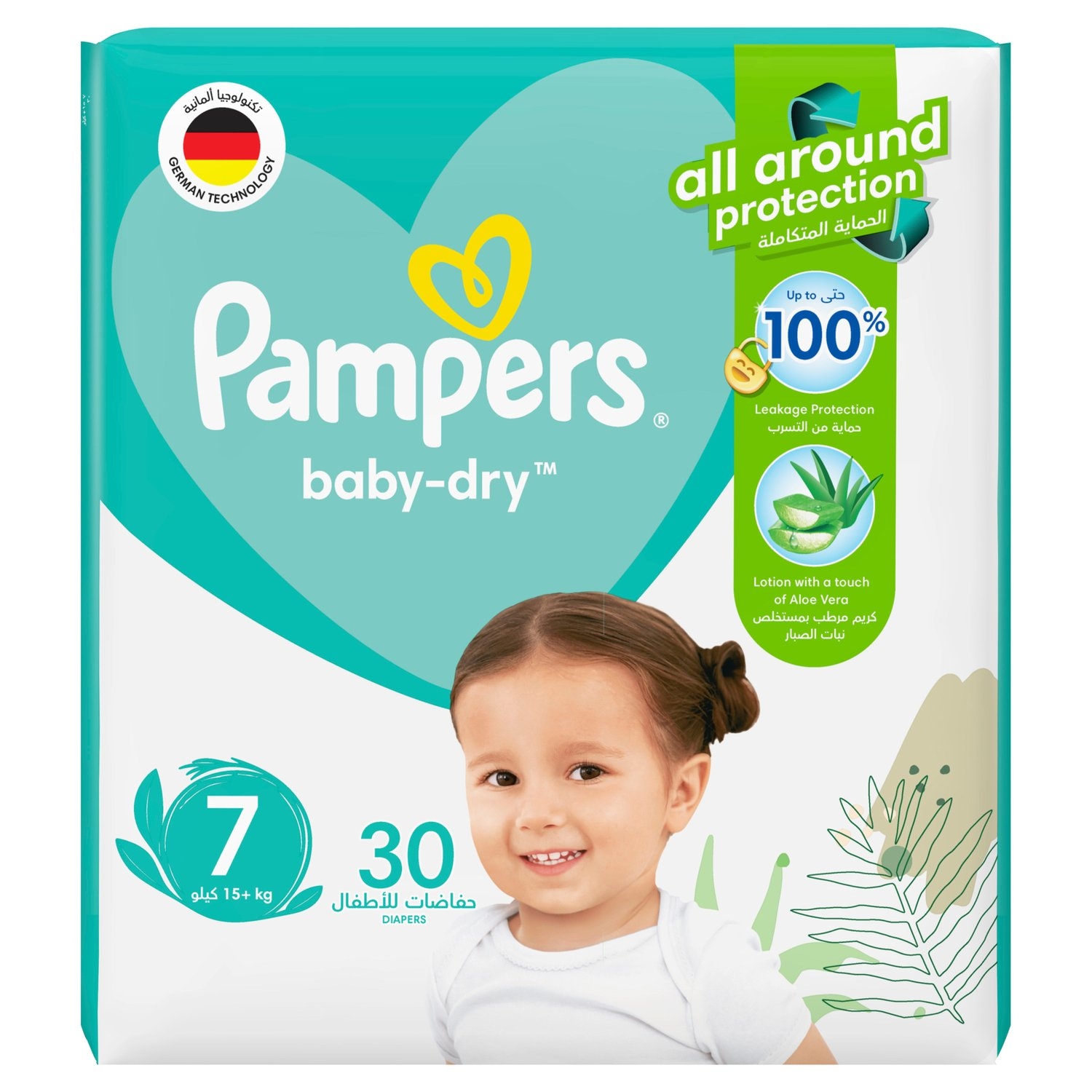 بامبرز بيبي دراي الحماية المتكاملة حفاضات مقاس 7 ( + 15 كجم ) مع حماية ضد التسرب 30 قطعة