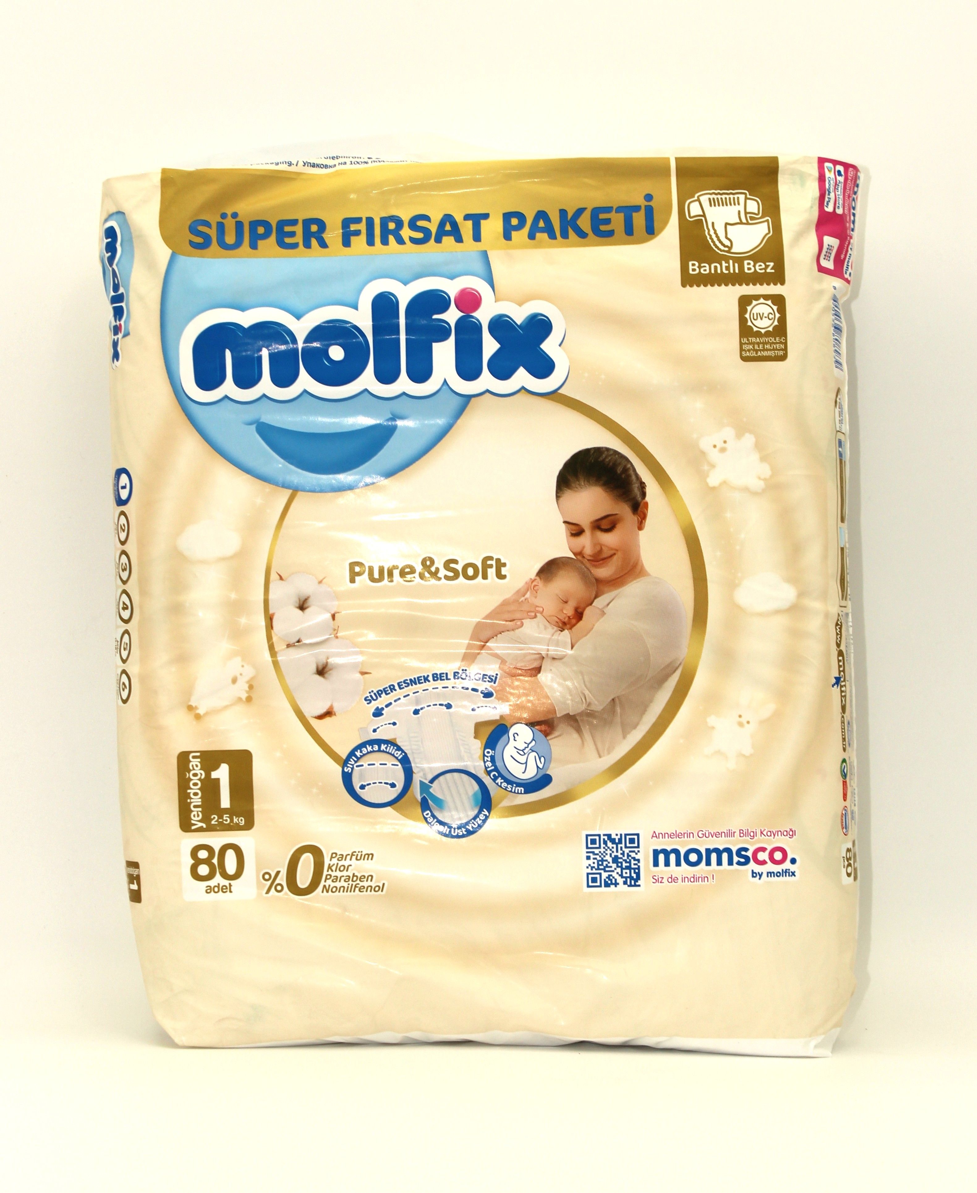 مولفيكس حفاضات اطفال للمولود الجديد ناعم وطبيعي مقاس 1 ( 2-5 كجم ) 80 قطعة