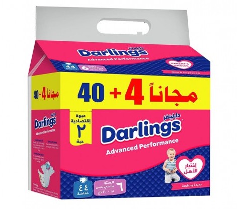 دارلينغز حفاضات اطفال جديدة ومتطورة اكسترا ماكسي بلاس مقاس 6 ( 18-30 كجم ) وسط 44 قطعة
