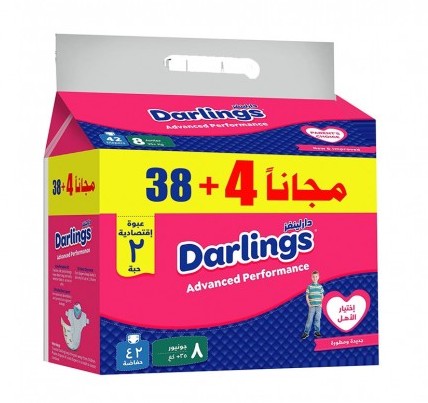 دارلينغز حفاضات اطفال جديدة ومتطورة جونيور مقاس 8 ( +35 كجم ) وسط 42 قطعة