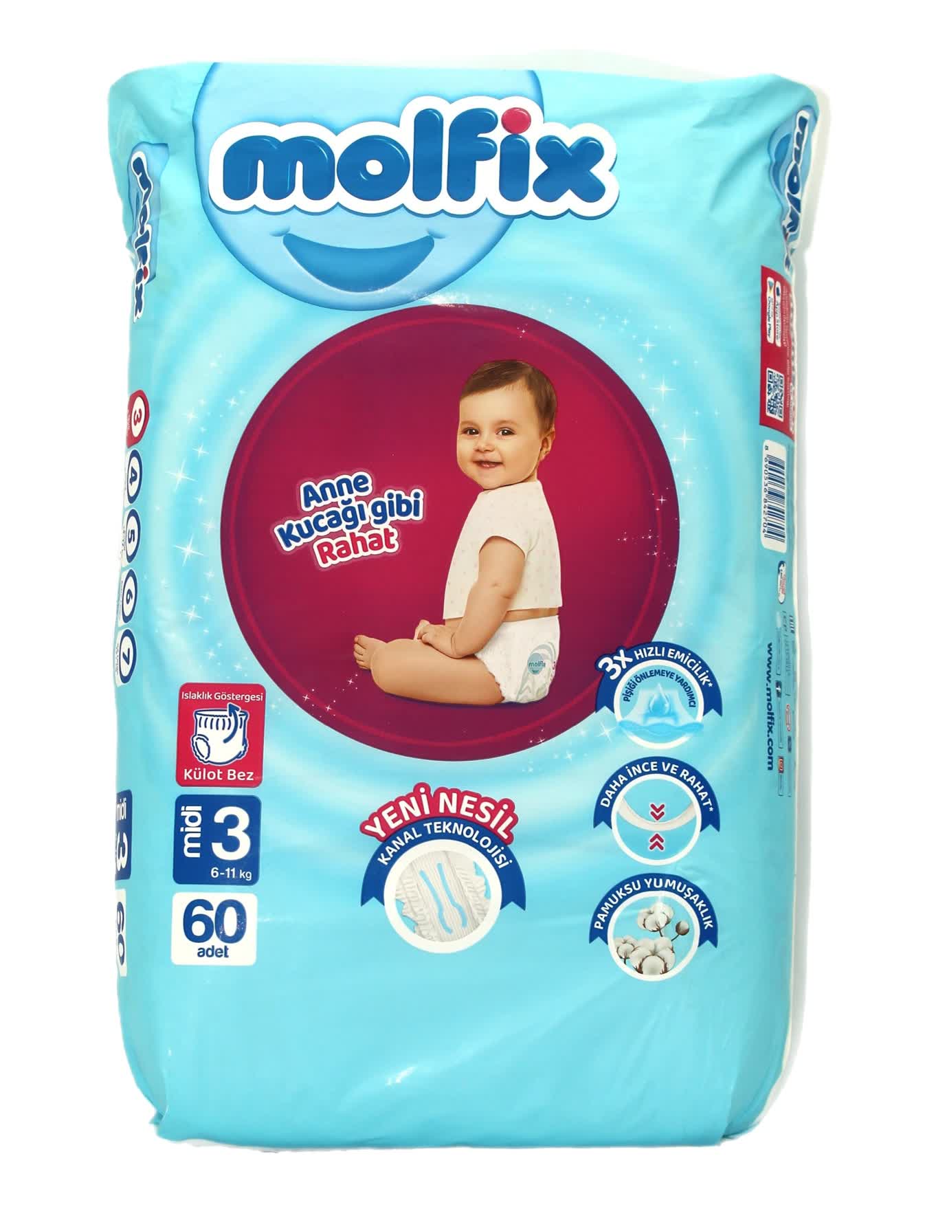 مولفيكس بانتس حفاضات اطفال مقاس 3 وسط ( 6-11 كجم ) 60 قطعة ( كلوت )