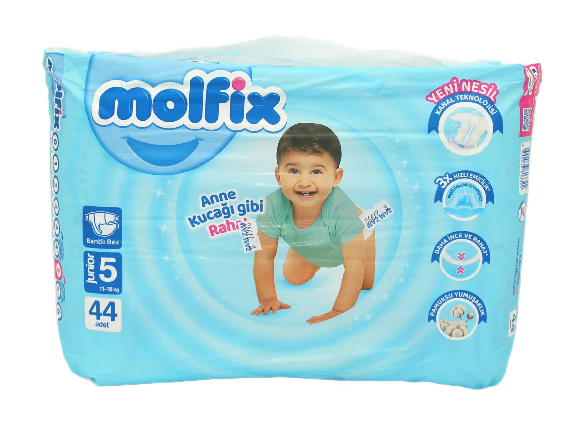مولفيكس حفاضات اطفال مقاس 5 جونيور ( 11-18 كجم ) 44 قطعة