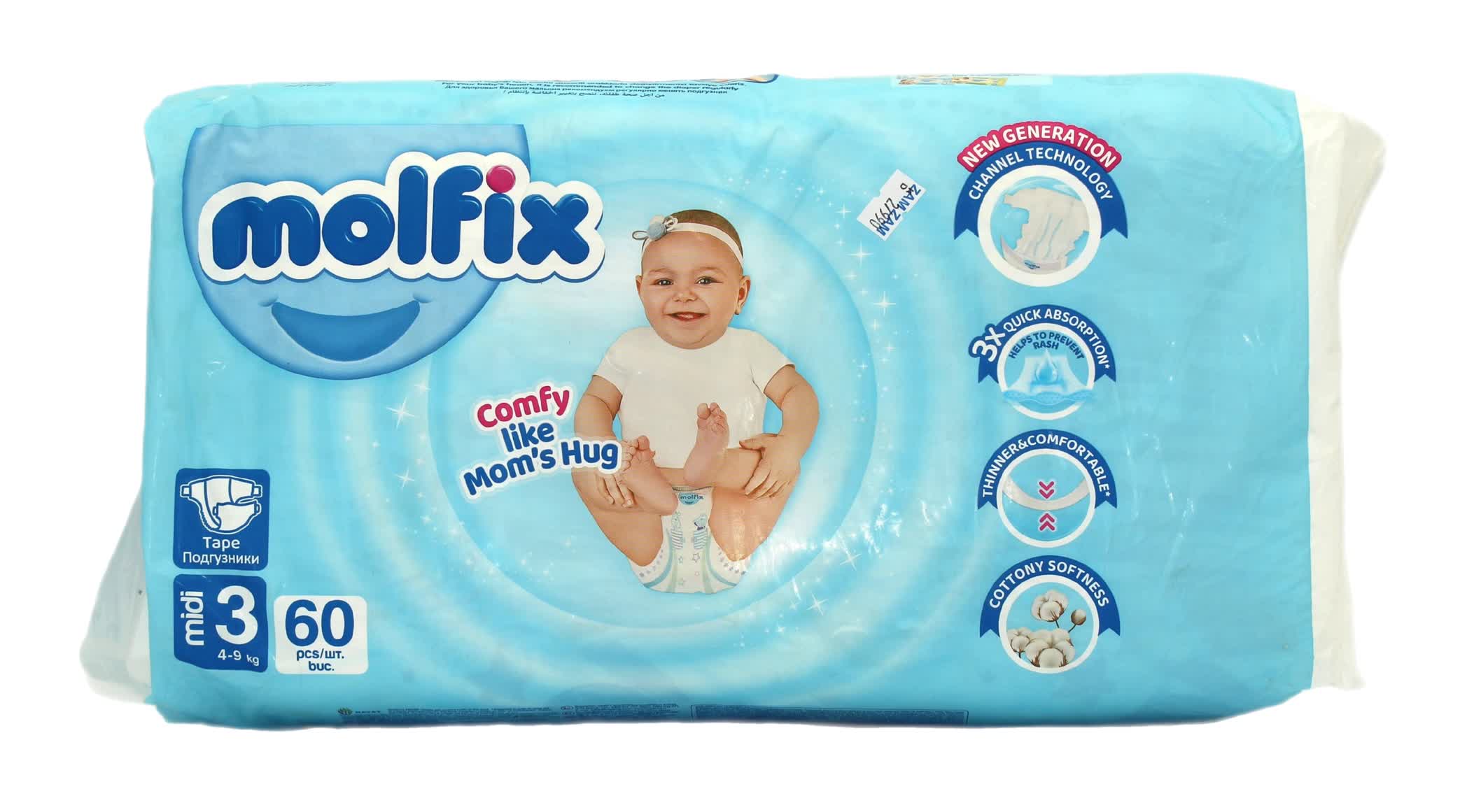 مولفيكس حفاضات اطفال مقاس 3 وسط ( 4-9 كجم ) 60 قطعة