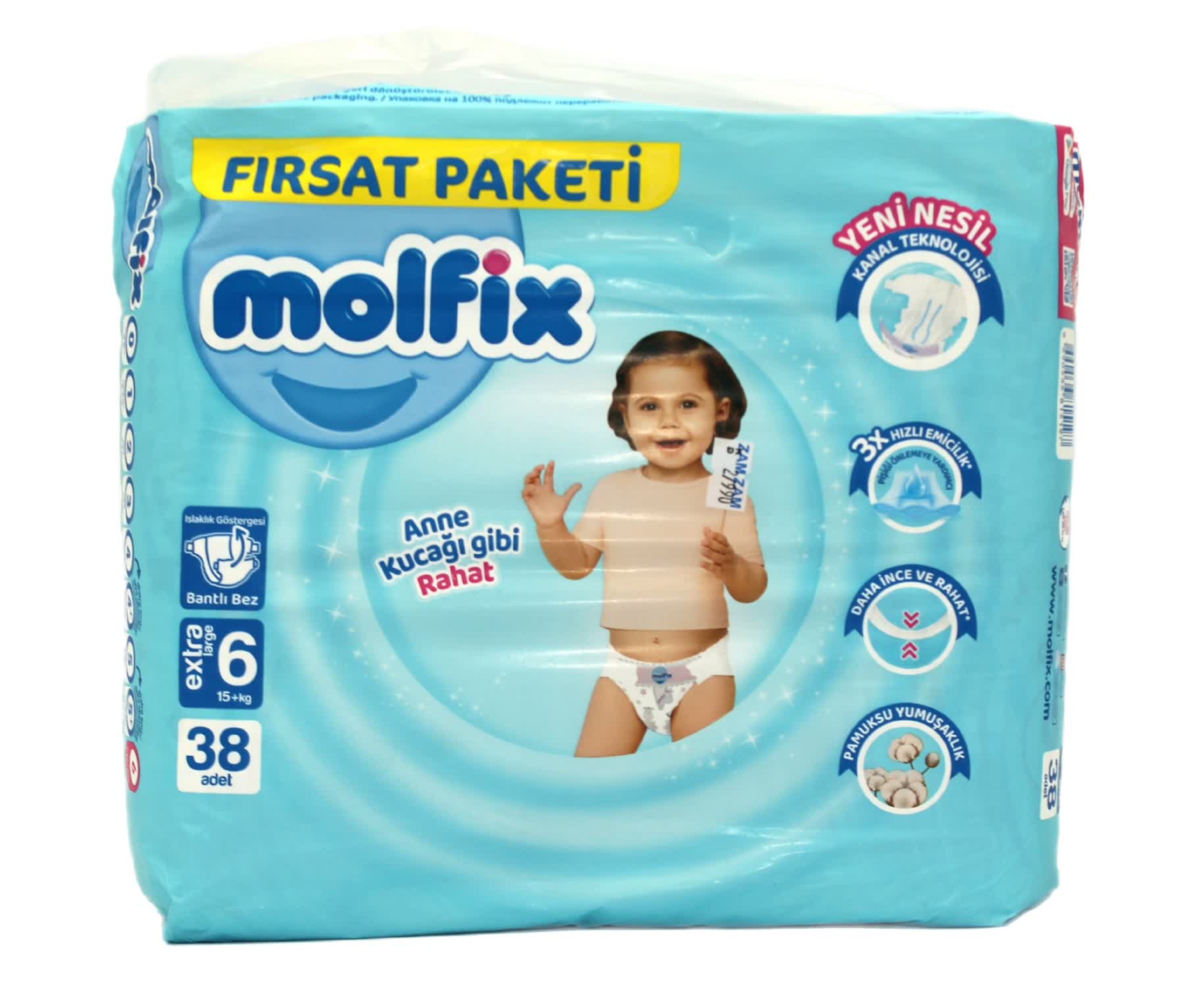 مولفيكس حفاضات اطفال مقاس 6 اكسترا لارج ( + 15 كجم ) 38 قطعة