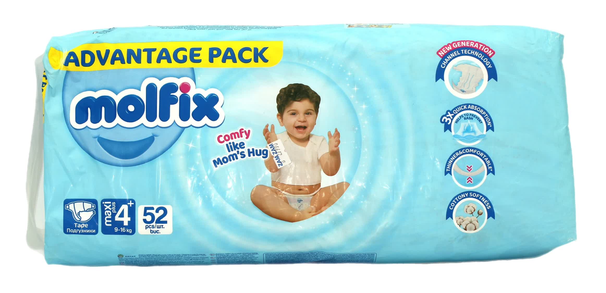 مولفيكس حفاضات اطفال مقاس 4 ماكسي بلس ( 9-16 كجم ) 52 قطعة