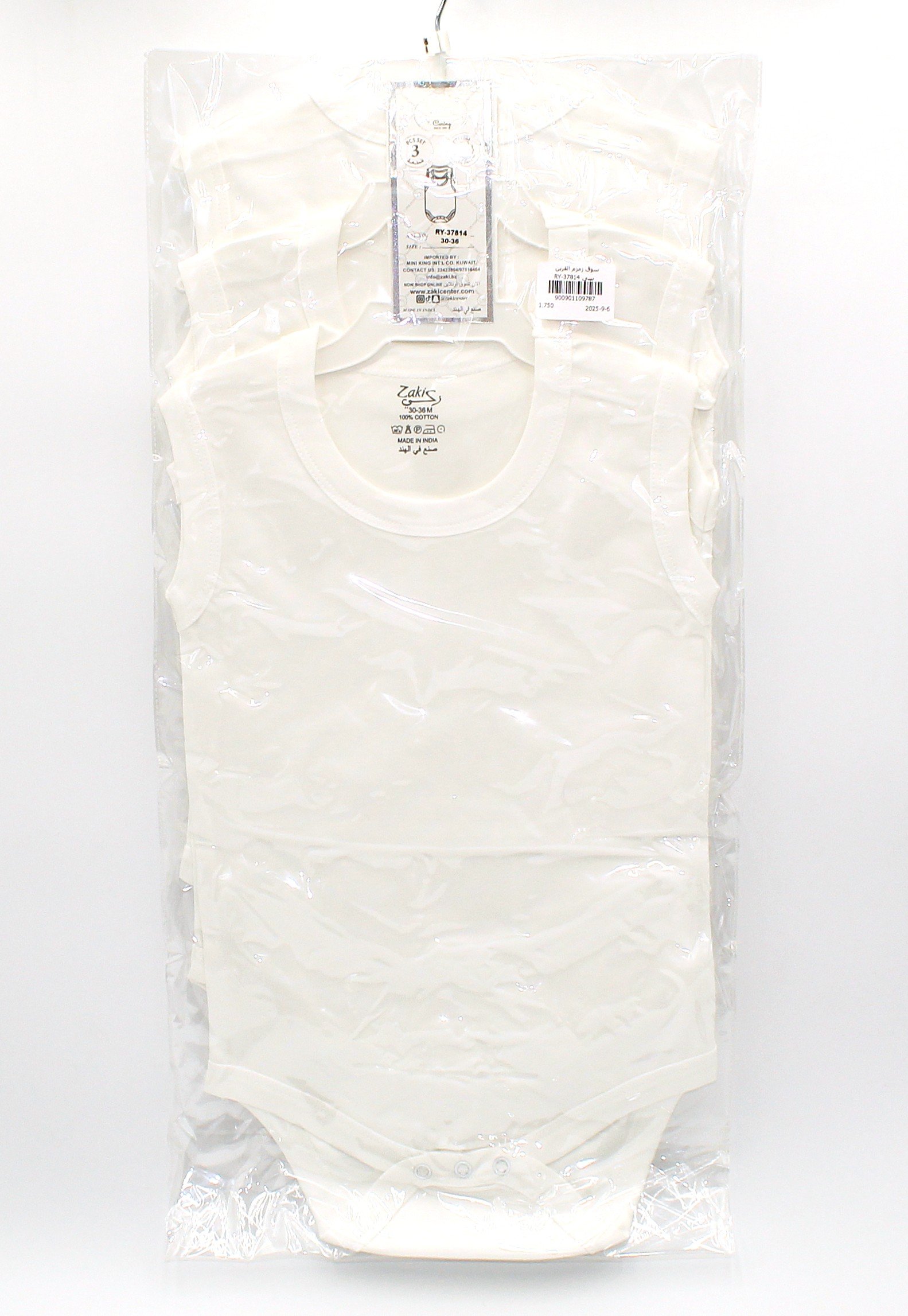 تبان بيبي ابيض بدون اكمام 3 قطع من زكي