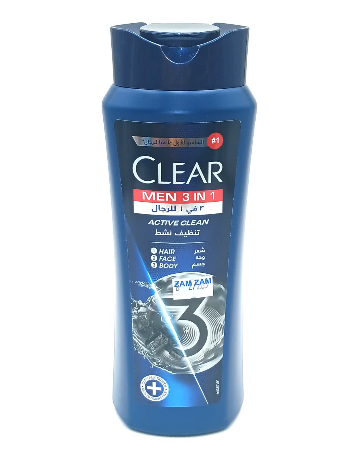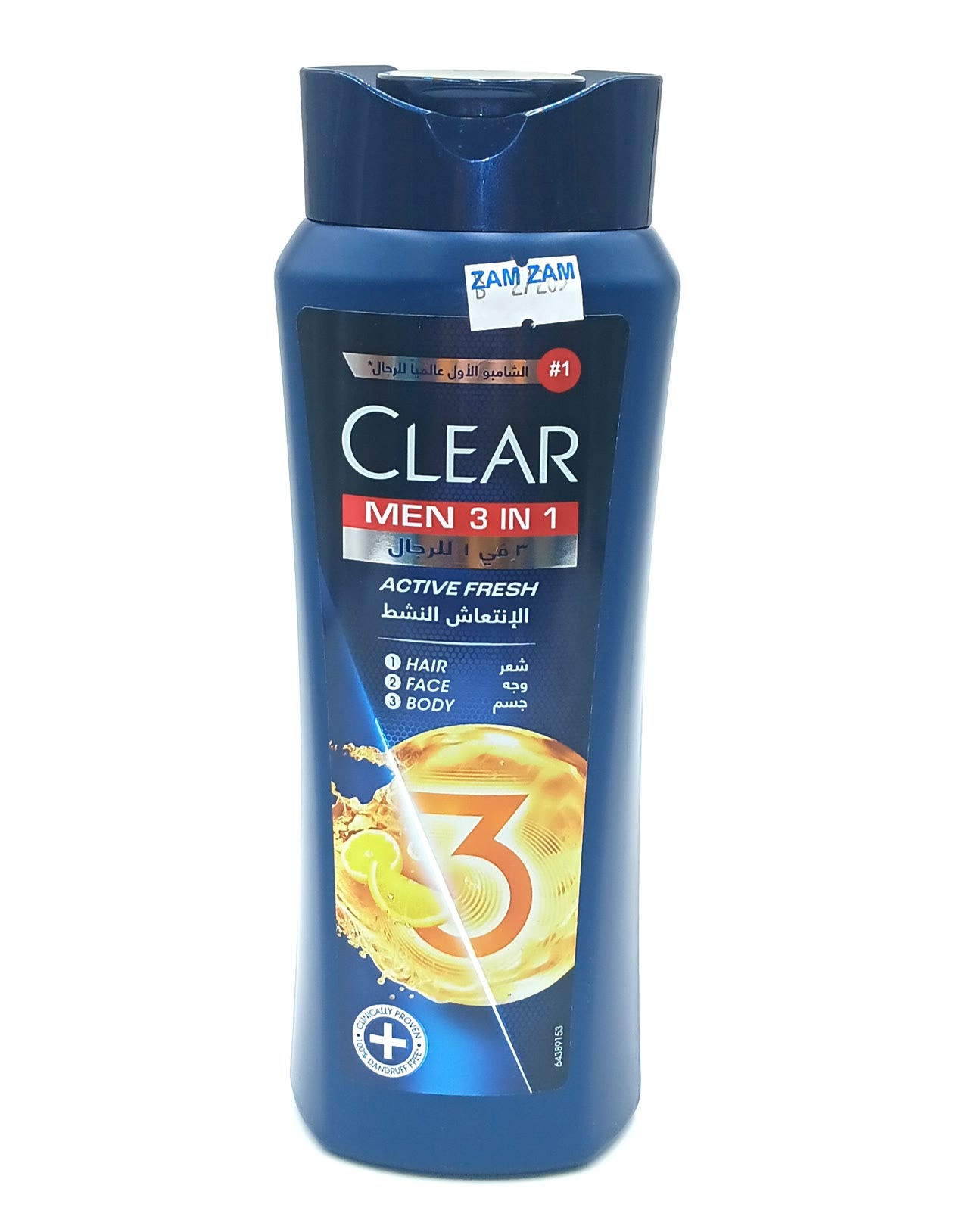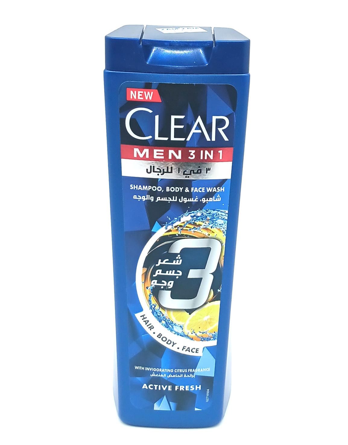 كلير شامبو للشعر وغسول للجسم والوجه للرجال 3×1 اكتيف فريش برائحة الحامض المنعش 400 مل