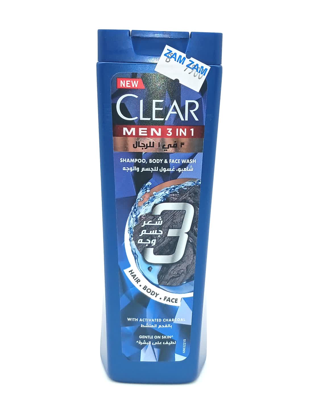 كلير شامبو للشعر وغسول للجسم والوجه للرجال 3×1 بالفحم المنشط