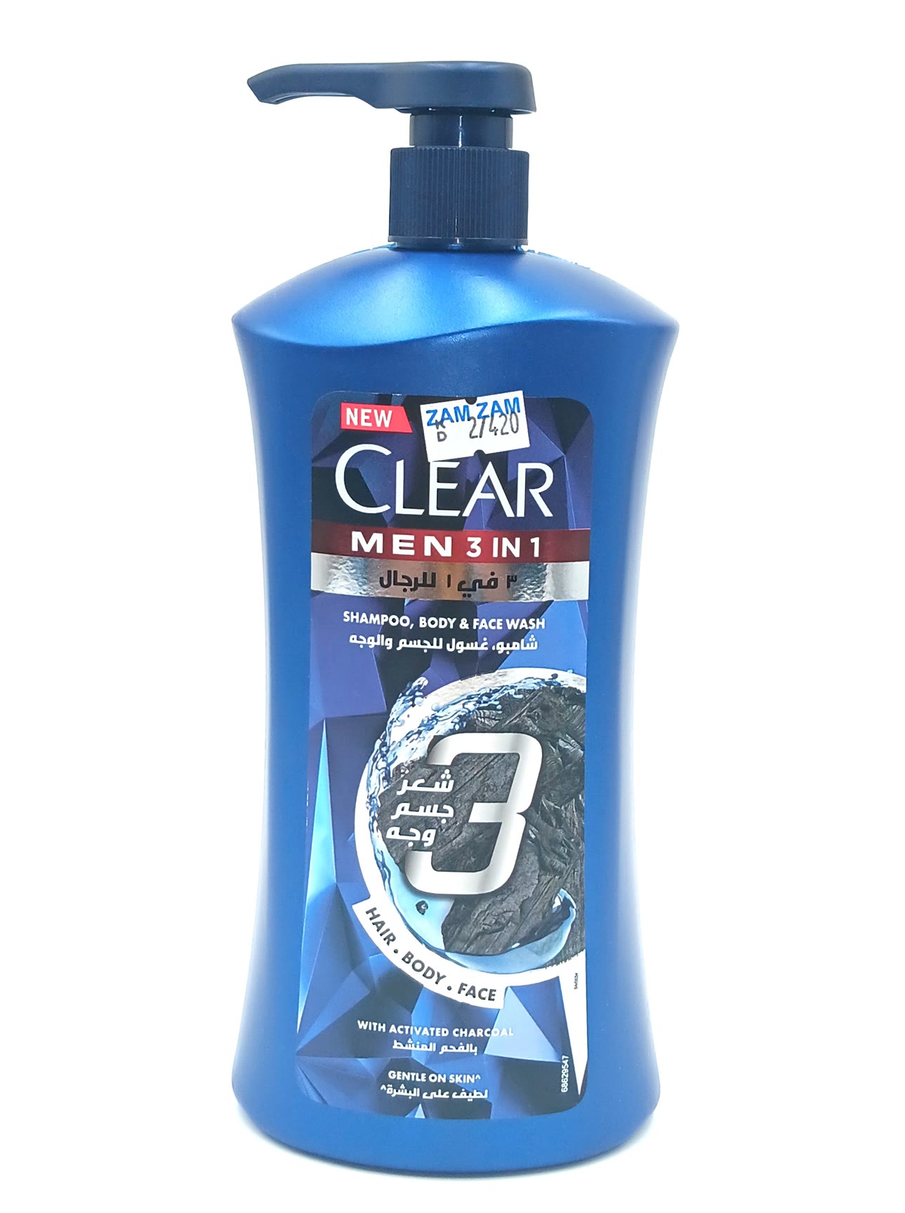كلير شامبو للشعر وغسول للوجه والجسم للرجال 3×1 بالفحم المنشط 900 مل