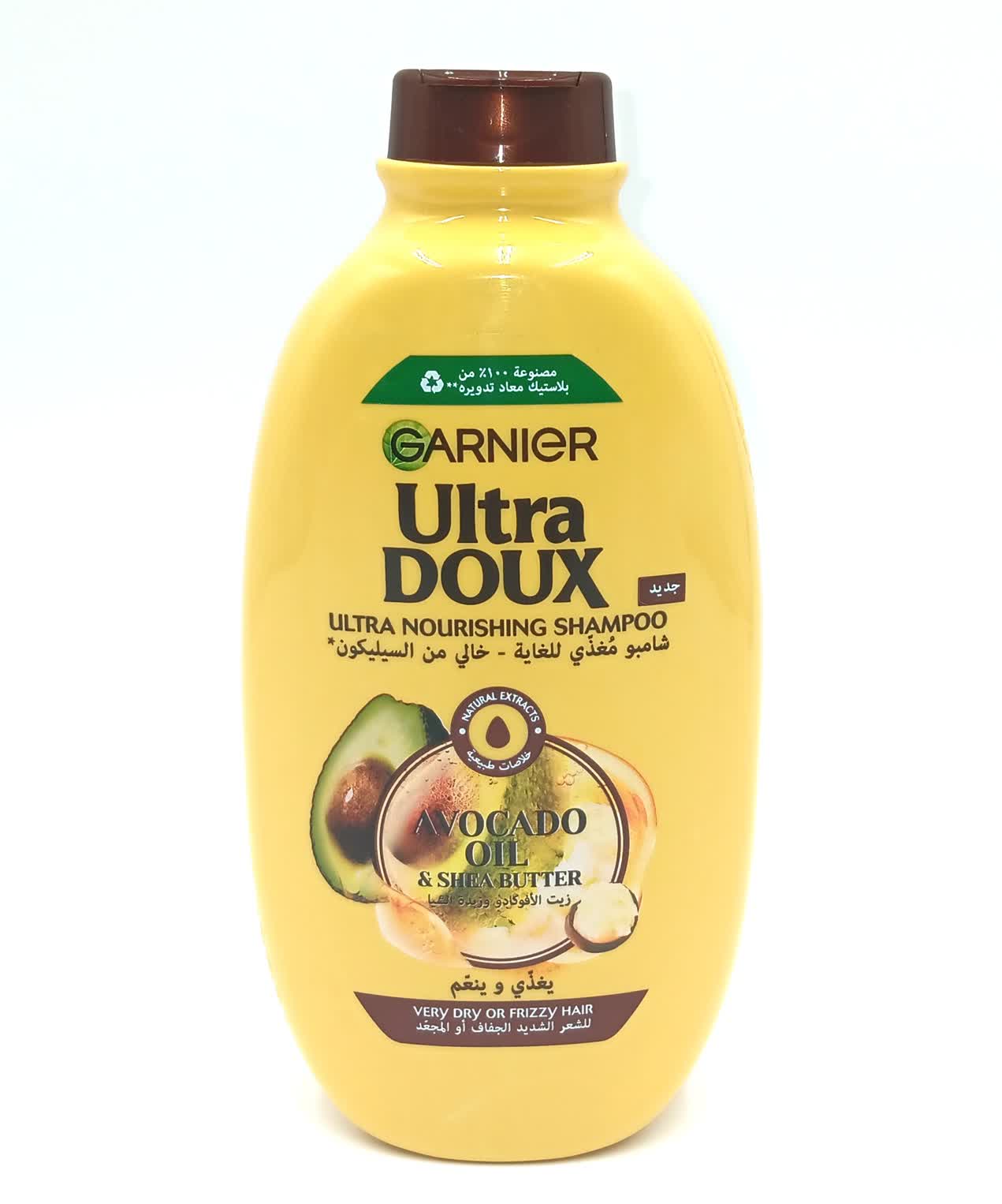 غارنييه الترا دو شامبو مغذي للغاية يغذي وينعم الشعر الشديد الجفاف والمجعد بزيت الافوكادو وزبدة الشيا