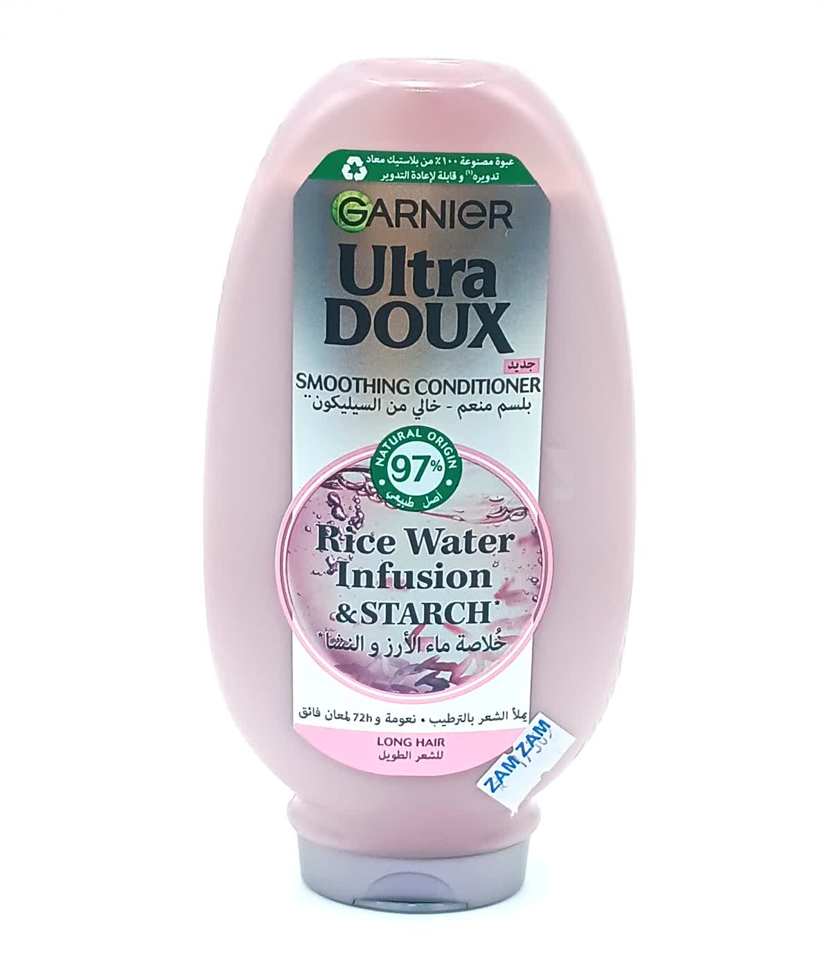 غارنييه الترا دو بلسم منعم للشعر الطويل بخلاصة ماء الارز والنشا 360 مل لمعان فائق