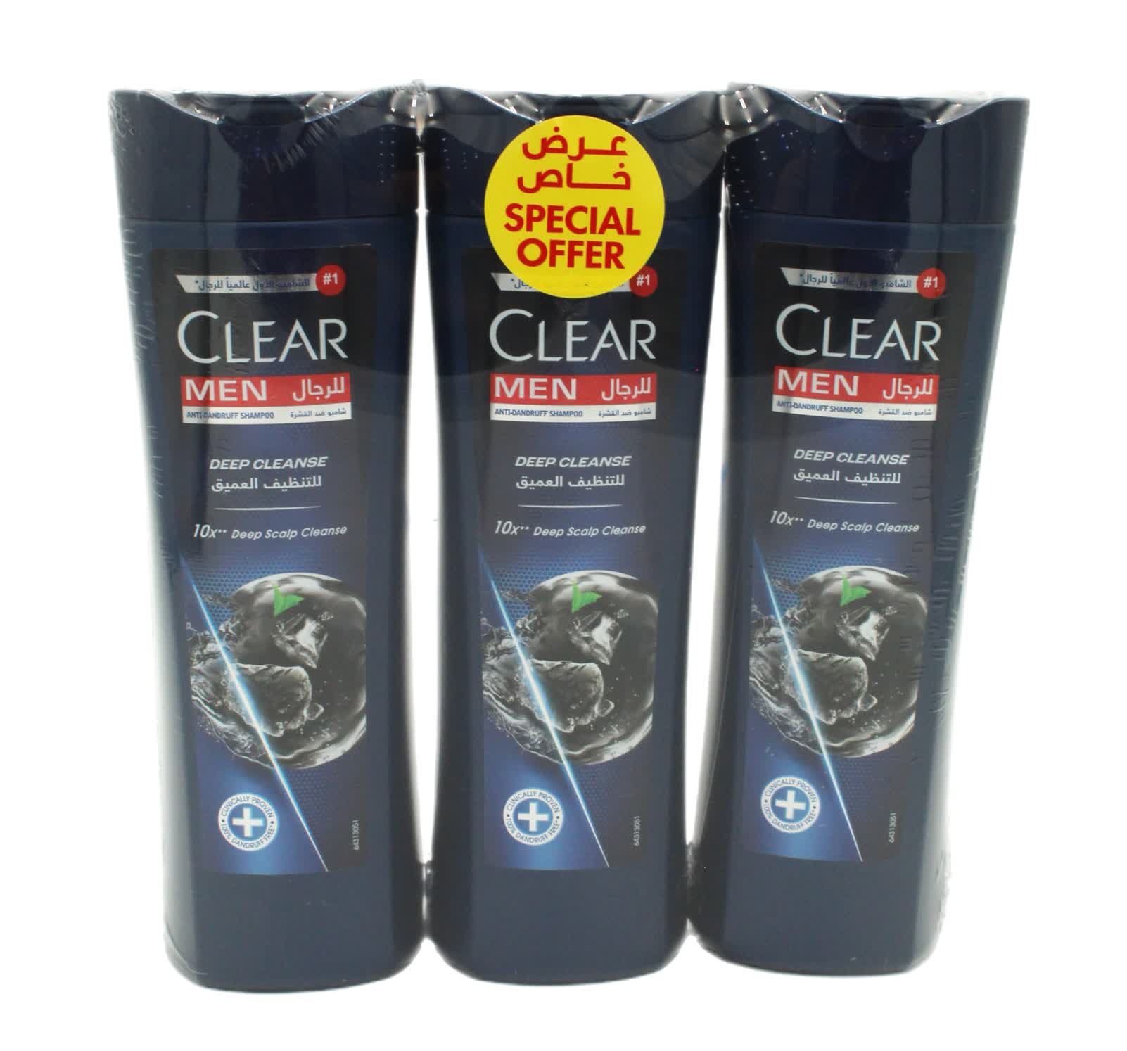 كلير شامبو للشعر ضد القشرة للرجال للتنظيف العميق 3 عبوات 400 مل
