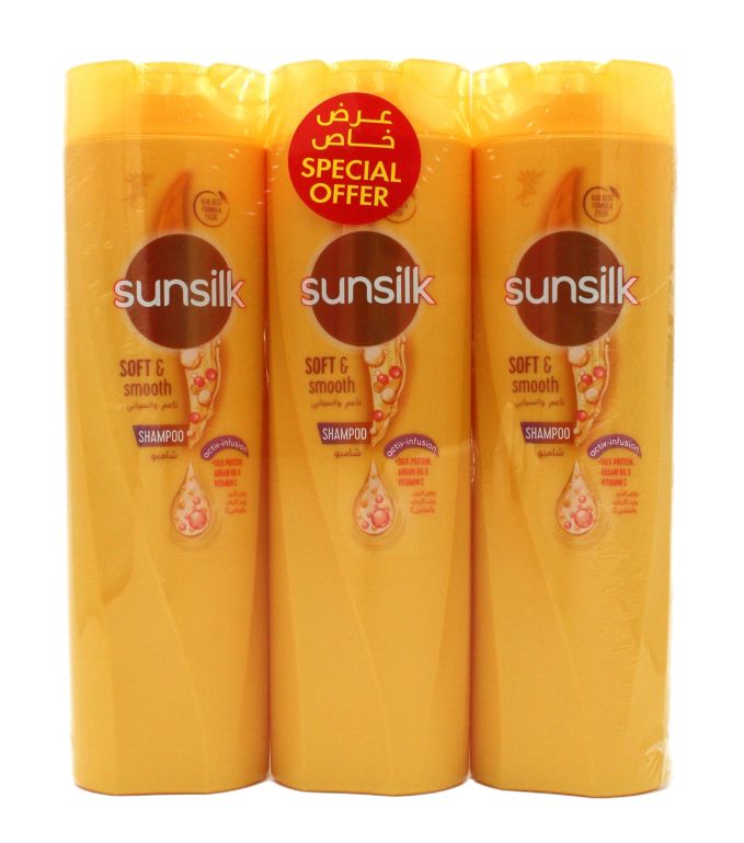 صانسيلك شامبو لشعر ناعم وانسيابي 3 عبوات 400 مل